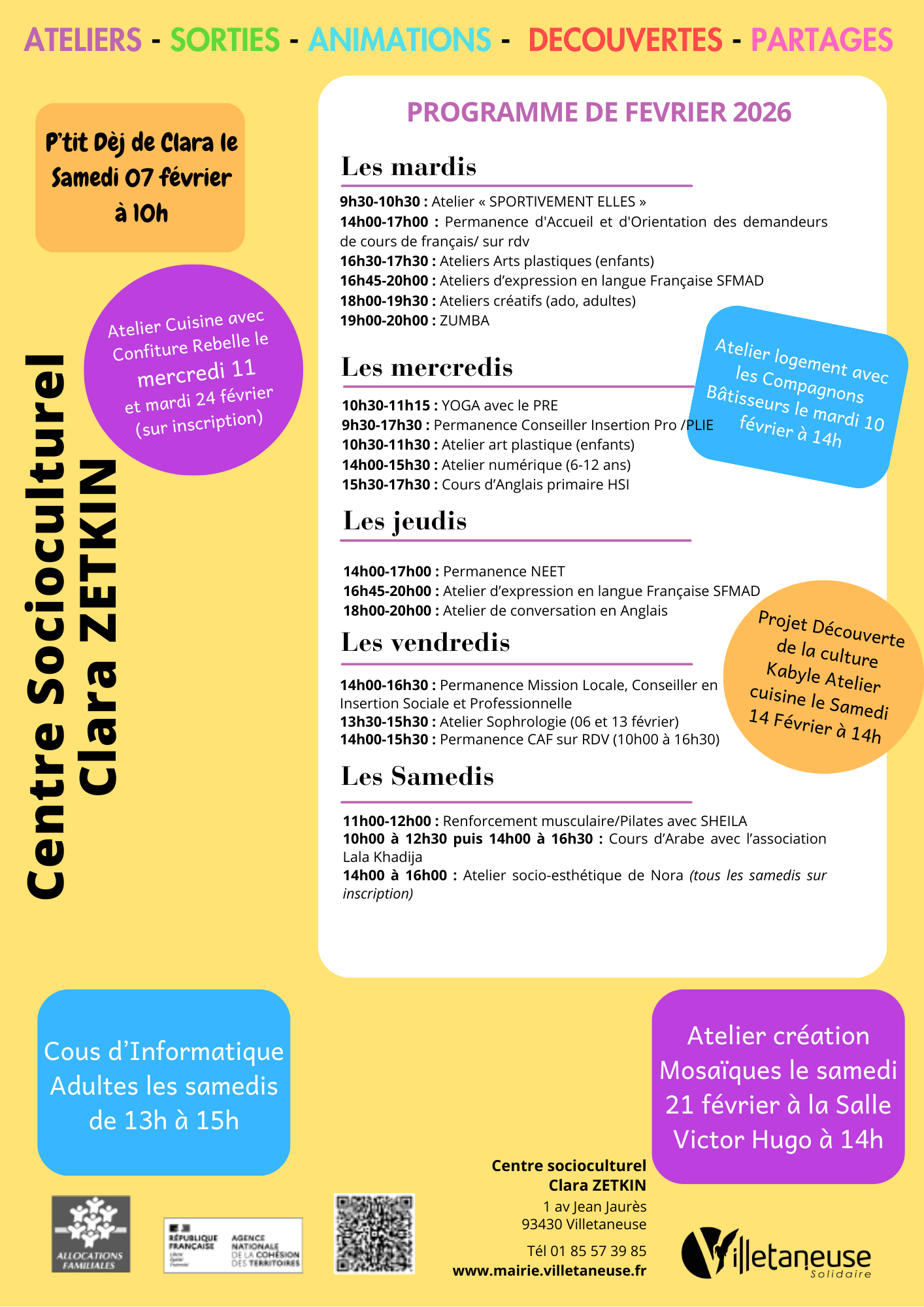 Retrouvez l'ensemble des activités du centre socioculturel Clara-Zerkin