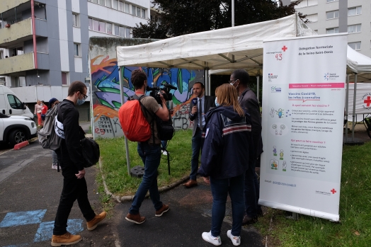 C'était l'occasion d'échanger directement avec ces derniers sur la stratégie vaccinale en France. Pour rappel depuis le début du mois de mars, la Municipalité s'inscrit dans une stratégie vaccinale de proximité afin que chaque Villetaneusien qui le désire puisse se faire vacciner. Pour ce faire, un numéro unique (06 14 59 39 63) est en place et propose un accompagnement (prise de rendez-vous, covoiturage...) vers la vaccination.