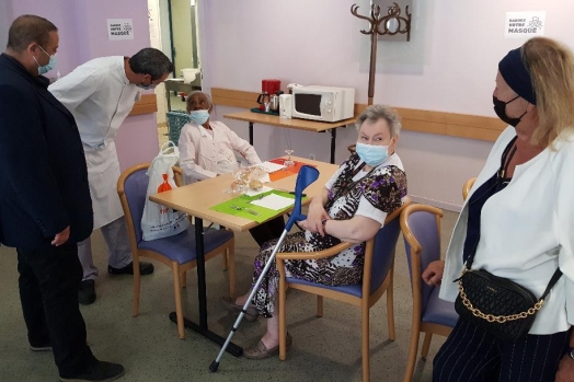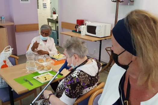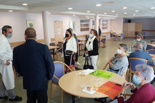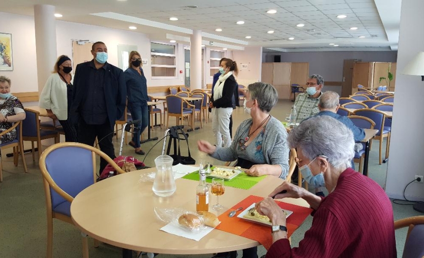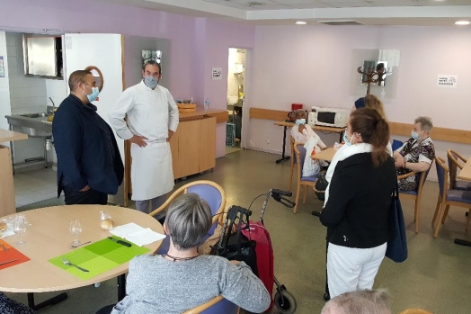 Pour ce premier service, Danielle Marmignon (Adjointe au Maire, en charge du cadre de vie), Majide Ammad (Adjoint au Maire, élu à la restauration) et Florence Laroche (Adjointe au Maire, élue à la culture) sont venus discuter avec les retraité-e-s et le personnel.