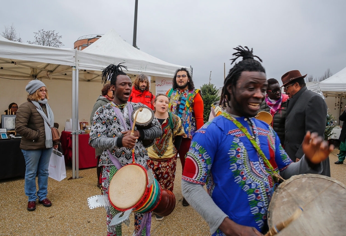 Ils étaient tous là pour ce deuxième rendez-vous de la foire : créateurs, des acteurs locaux de la solidarité, du développement équitable, des artisans prêts à partager leurs passions et leurs engagements ! Un groupe qui s'est étoffé depuis la première édition de la foire. Le froid saisissant qui a sévit ce dimanche-là n'a pas entamé la bonne humeur et l'envie de danser sur les musiques africaines qui se sont succédées, du Burkina Fasso, du Bénin et du Togo.