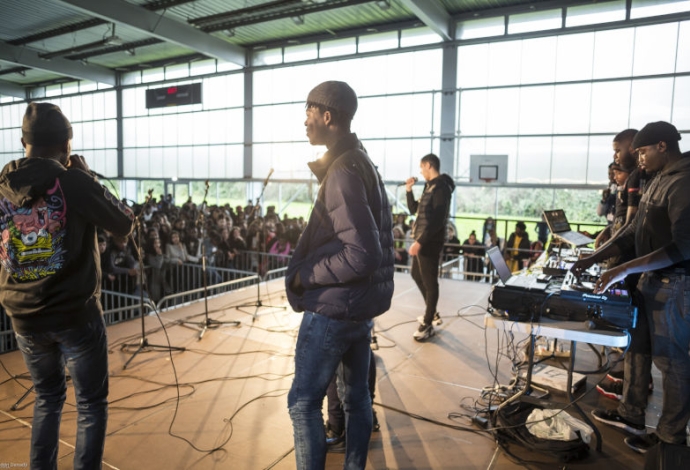 Jamais encore le gymnase Jesse-Owens n’avait résonné de cette façon. Le 22 février, plus d’une trentaine de groupes Rap, dont les Villetaneusiens du groupe CG6, se sont succédé lors d’un festival Rap inédit à Villetaneuse organisé par Chibalani productions et Requin Méchant, avec le soutien des associations JESSE et 5/7/9 Initiatives et l’appui logistique de la Ville. Sur la scène durant près de 7 heures, du fl ow (débit rapide de paroles), de la battle (joute), du faya (mettre le feu), de la punchline (réplique cinglante), de la street cred (crédibilité) ont rivalisé devant un public jeune et nombreux. Une belle première réussie !