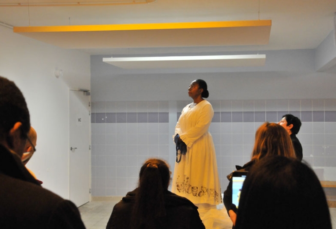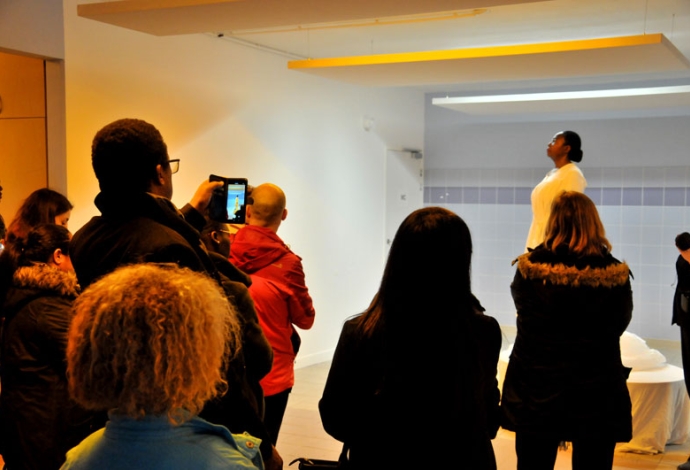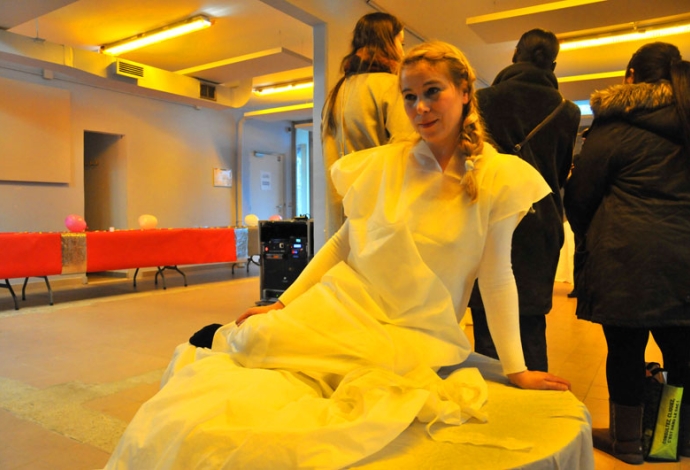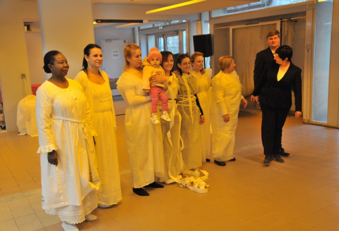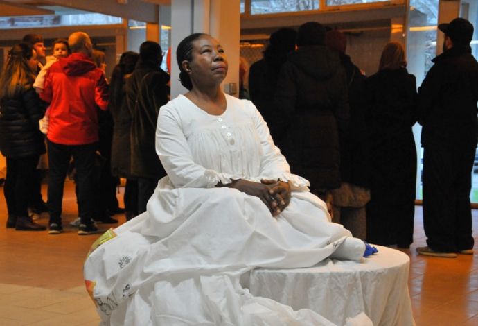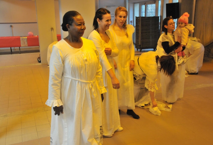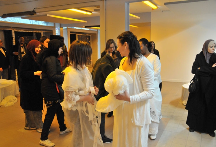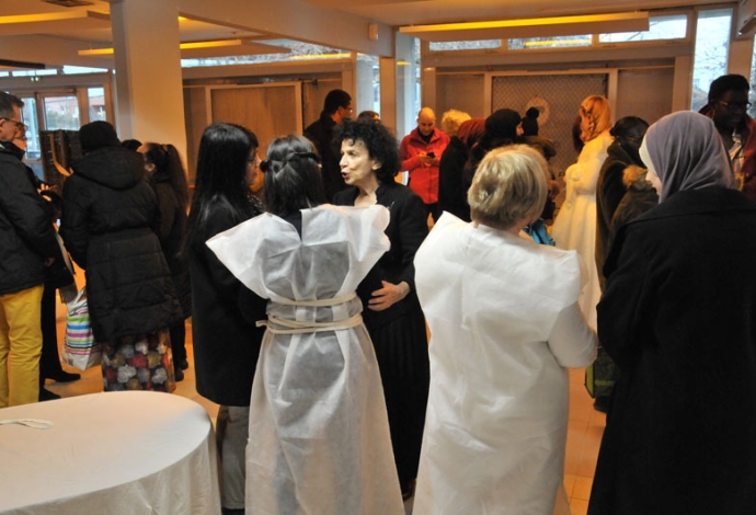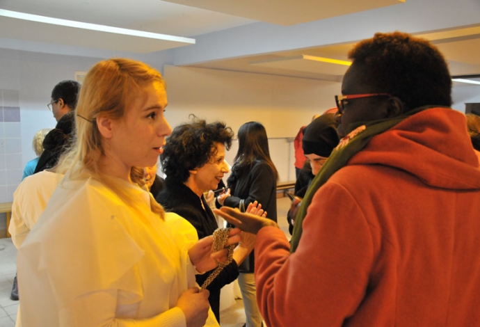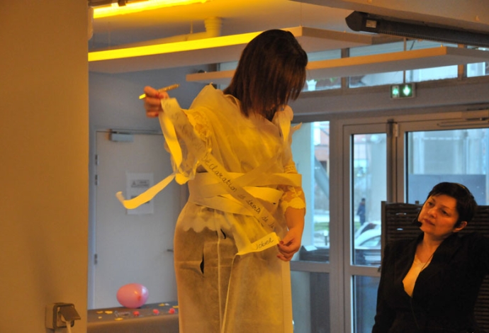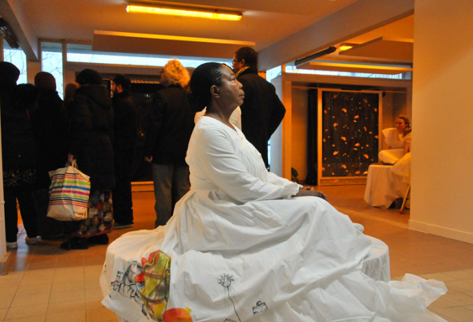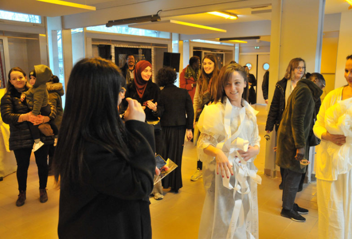 "Prisonnière statut qui es-tu vraiment ? Pourquoi ne luttes-tu pas pour ta liberté ? Changes tes rêves en réalités, brises ces chaines qui entravent tes mains, libères ta parole, conquiers ta liberté..." extrait du texte d'Ayate, une des Villetaneusiennes qui a participé au spectacle des Femmes-Statut au tremplin Jacques-Duclos, sous la direction de la compagnie de la Pierre Noire, à l'occasion de la journée internationales des droits des femmes.