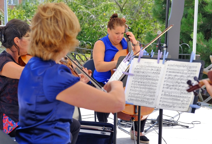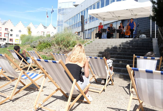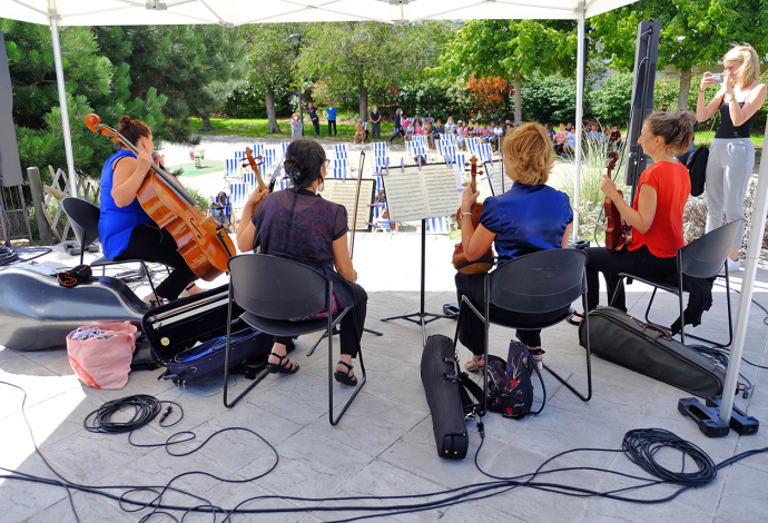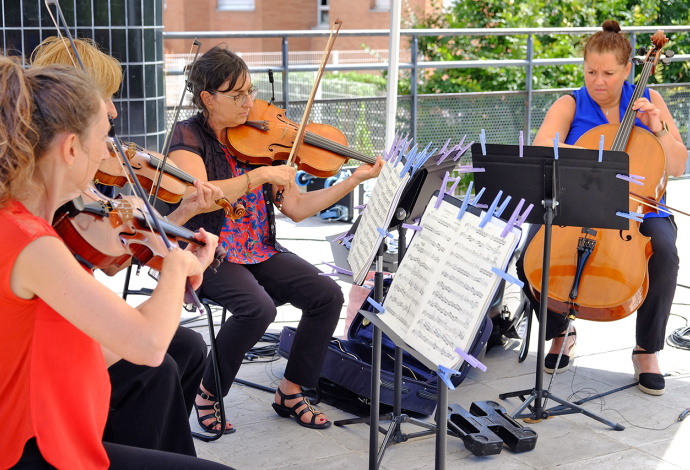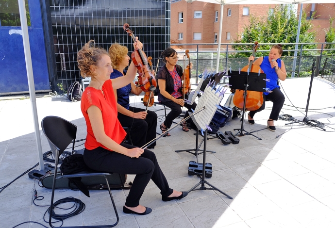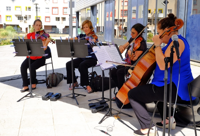 Le 26 Août à 15h au Jardin Baldaccini de l’Hôtel de ville, une trentaine de Villetaneusiens ont pu profiter d’un concert du quatuor à cordes de l’orchestre Divertimento. De Mozart à West Side Story, de Bizet à Bernstein, l’orchestre a fait voyager les habitants de Villetaneuse le temps d’une après-midi !