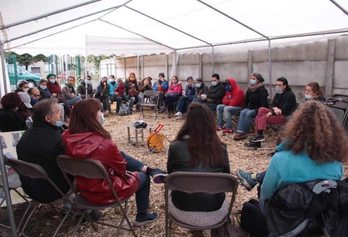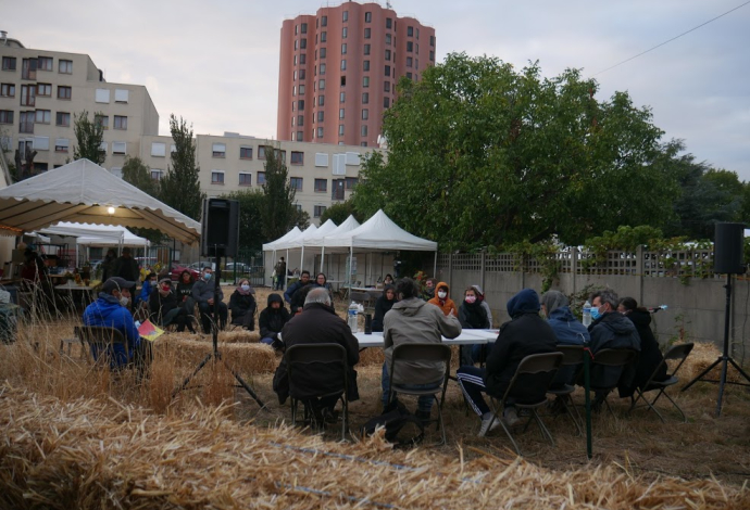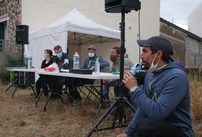 Malgré les incertitudes liées au contexte sanitaire et météorologique, le Festival Plein champ s’est bien tenu le week-end des 25, 26 et 27 septembre dernier à Villetaneuse, au sein du jardin partagé et des nouvelles parcelles adjacentes, en cours de transformation écologique. Grâce à une équipe solide et déterminée, avec le concours du collectif d’habitant.e.s du jardin partagé, le festival a pu accueillir comme il se doit les nombreux.ses visiteurs, sur des espaces aménagés en un temps record.