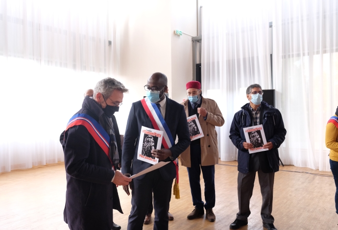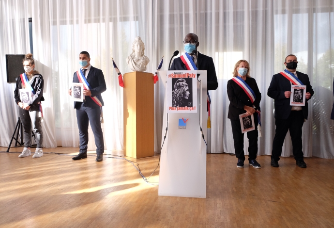 Mercredi 21 Octobre 2020, un hommage et une minute de recueillement ont été observés en présence de Stéphane Troussel (Président du conseil départemental de Seine-Saint-Denis), du maire, d'élus, des responsables des cultes à Villetaneuse, du personnel communal et d'habitants pour rendre hommage à Samuel Paty.