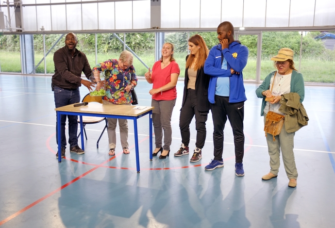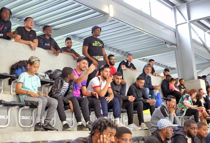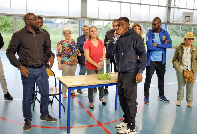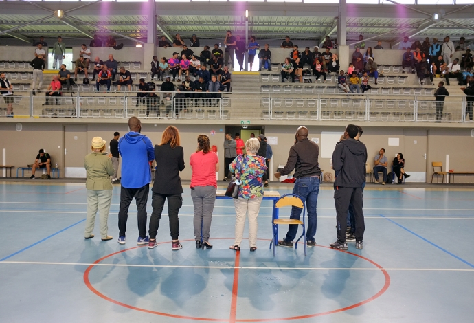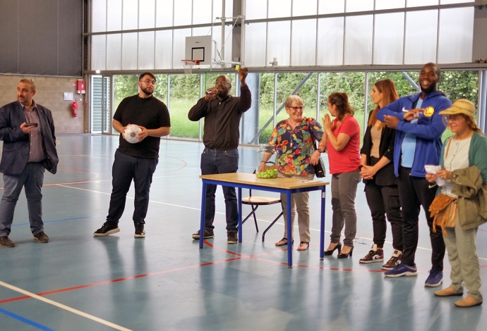 Atmosphère électrique au gymnase Jesse-Owens en ce dimanche 22 mai pour la phase finale du Gala de Futsal. Organisé en partenariat avec la Ville et les associations HSI et Premier Appel, ce tournoi a permis à la fondation Gustave-Roussy de bénéficier d’une cagnotte de 1750 euros pour la recherche contre le cancer grâce à une tombola caritative. Les quatre équipes finalistes nous ont offert un spectacle impressionnant de technique, d’intensité, d’explosivité, de célérité et de précision ! Le maire, Dieunor EXCELLENT, entouré de ses élu•es et accompagné de Ludovic OUCENI, parrain du gala, n’a pas manqué, avec eux, de remercier les joueurs et le public pour leur générosité et la qualité du jeu offert durant ce tournoi.