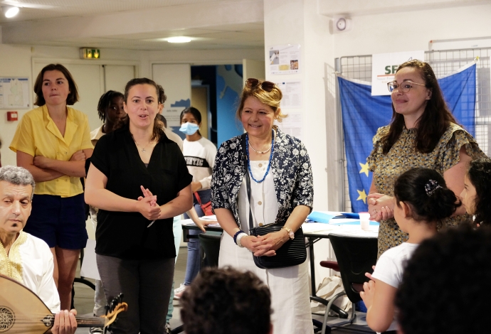 Le samedi 22 mai 2022, le centre socioculturel (CSC) Clara Zetkin a organisé le Printemps de l’égalité, une journée festive où les Villetaneusiens étaient invités à des activités de sensibilisation sur des sujets de discriminations et d’égalité des droits, tout en profitant d’une après-midi festive. Rencontre avec des associations locales, théâtre et concerts, projections de vidéos et enregistrement d’un podcast avec le Conseil des Jeunes de Villetaneuse… L’événement a également eu la visite de Dieunor Excellent, Maire de Villetaneuse, accompagnés de ses élus du Conseil municipal, pour échanger avec ses concitoyens. Ainsi, plus d’une centaine de Villetaneusiens étaient présents pour s’informer, discuter, échanger au Printemps de l’égalité. Ce fut l’occasion de se réunir autour d’un goûter et de profiter d’activités ludiques et culturelles tant pour les petits que pour les grands !