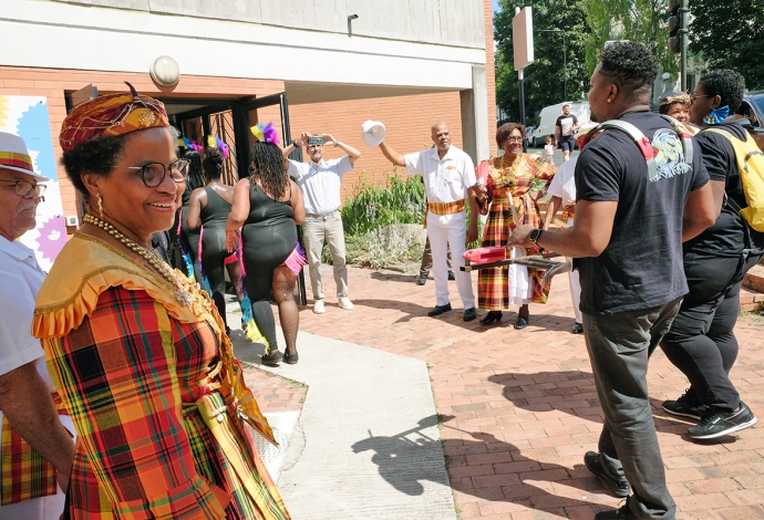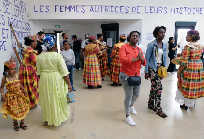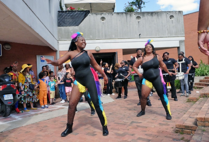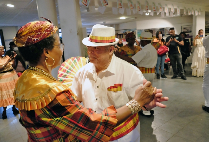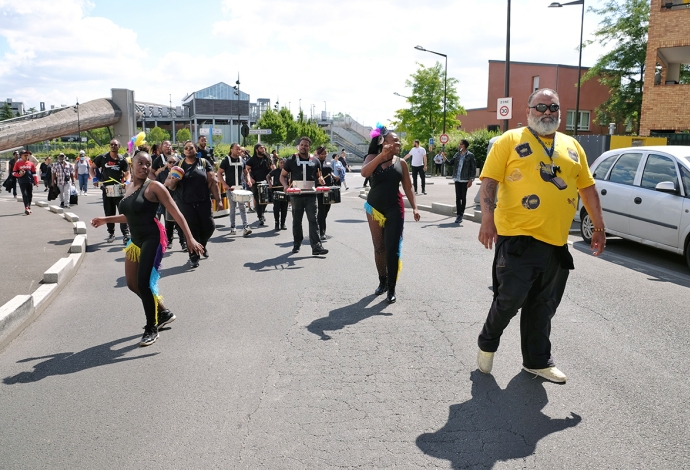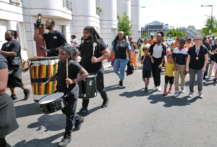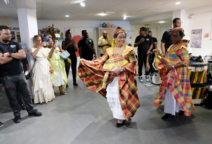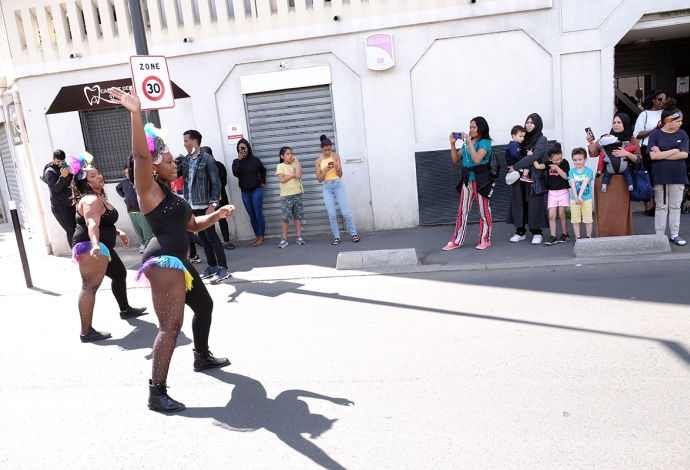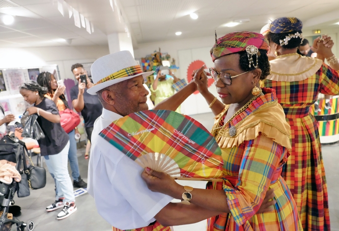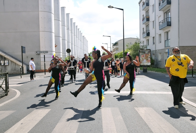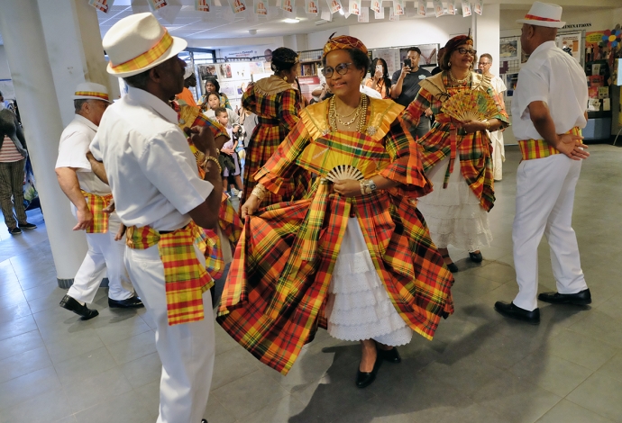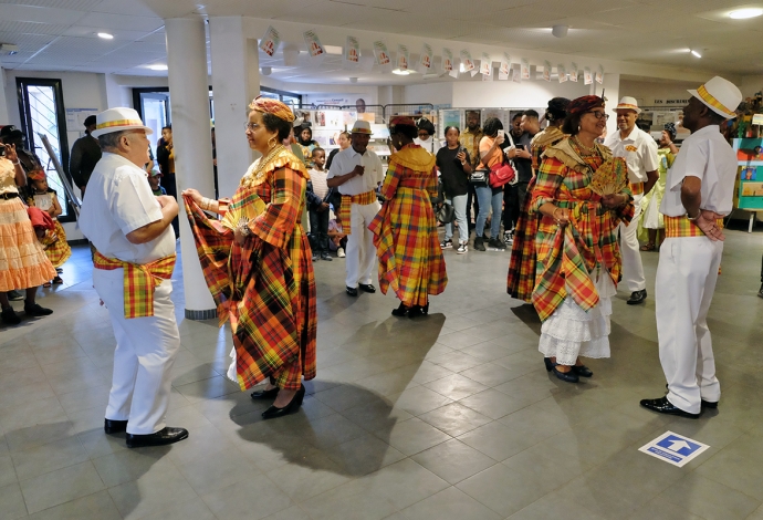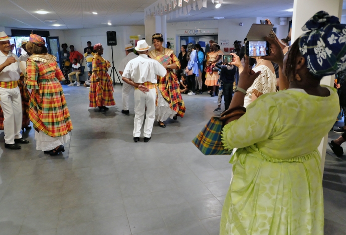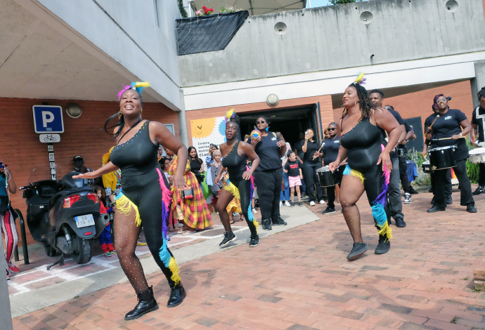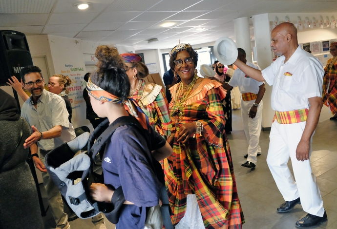 La semaine de « L’esclavage en mémoire », initiée par les associations Fos Rasin Nou et Chayé Yo et soutenue par la Municipalité, s’est achevée en défilé rythmé et danses chaloupées en ce dernier samedi du mois de mai. Le cortège s’est élancé en milieu d’après-midi depuis la Place des Partages en direction du centre socioculturel (CSC) Clara Zetkin. Les musiciens et danseuses de l’association Chayé Yo ont ouvert la voie sur des rythmes caribéens tout au long du parcours, rue du 19 mars 1962 et rue Roger Salengro. Ils ont été accueillis à l’entrée du centre Clara Zetkin par des danseuses et danseurs martiniquais en tenue traditionnelle qui, à leur tour, ont proposé au public quelques danses chaloupées. L’après-midi s’est achevée dans la convivialité d’un buffet coloré aux épices des îles !