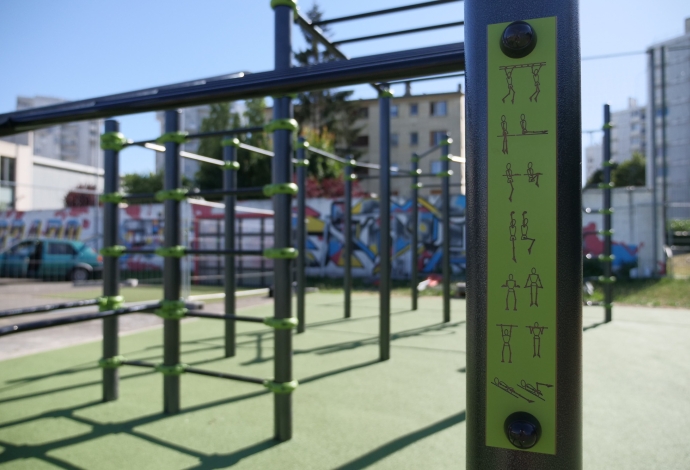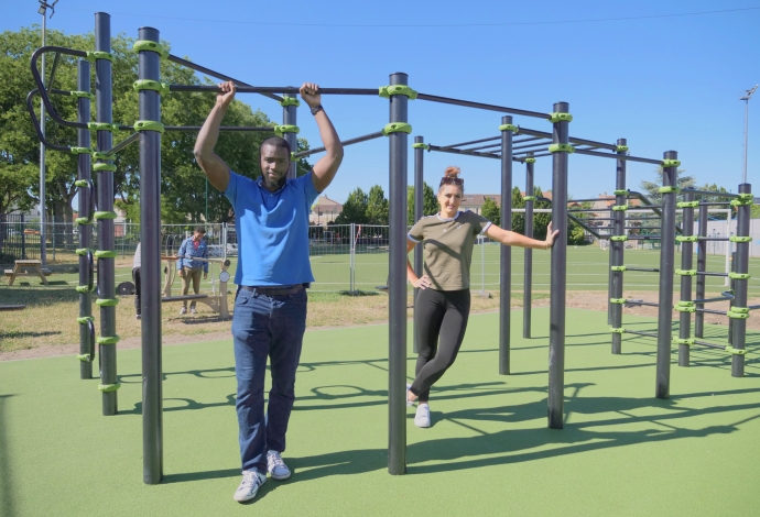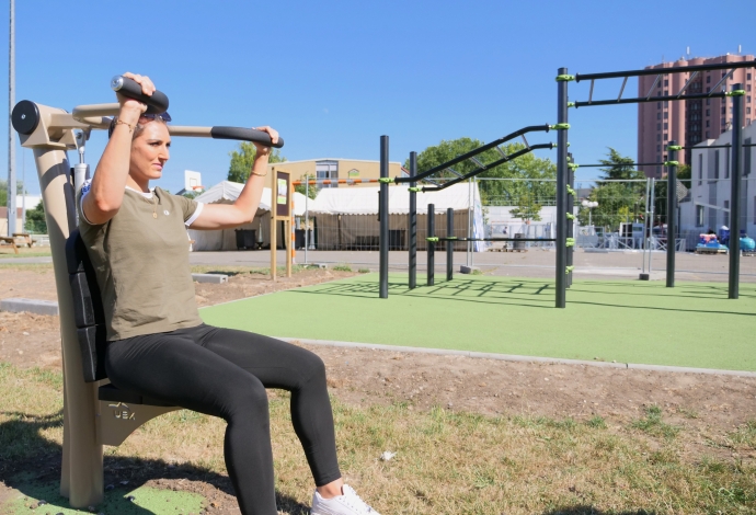 À l’occasion du dispositif « L’été à Villetaneuse 2022 » au Parc Carnot, la municipalité a mis en place un aire de fitness à proximité du Stade Dian, côté gymnase Langevin/Vallès. Découvrez ci-dessous en quelques photos les différentes structures de fitness et musculation. En plus de la « cage », vous y trouverez un vélo elliptique, un banc à abdominaux, un rameur, un vélo fitness et un banc de développé couché. Attention : cette aire de fitness est interdite aux moins de 14 ans et aux personnes mesurant moins de 1m40. En cas d’accident : appeler le 15 (SAMU). Plus d’information au Pôle Sportif de la Mairie de Villetaneuse au 01 85 57 39 70. Et un grand merci à Natacha Martinis, adjointe au Maire déléguée à l’éducation, au sport et aux Jeux Olympiques de Paris 2024 et à Salif Sidibé, Conseiller municipal délégué au développement des pratiques sportives pour quelques séances de démonstrations en avant-première, le 8 juillet dernier à quelques jours du coup d’envoi de « L’été à Villetaneuse 2022 ».