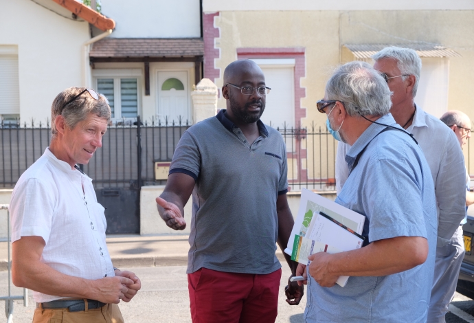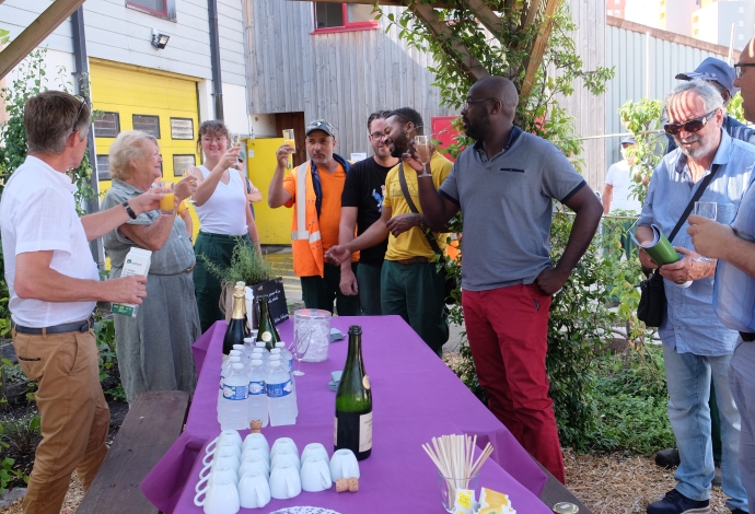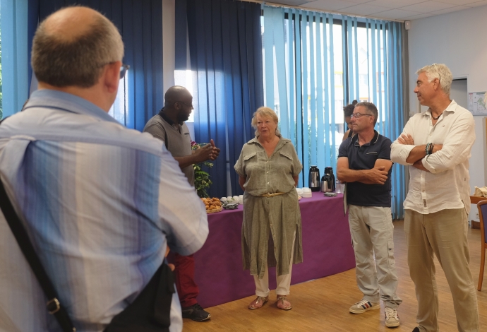 Mardi 19 juillet, la municipalité a eu le plaisir d'accueillir le jury des Villes et Villages Fleuris à Villetaneuse. Dieunor EXCELLENT, Maire de Villetaneuse, accompagné de Danielle MARMIGNON, adjointe au Maire déléguée au cadre de vie, à la propreté et aux espaces verts, étaient présents pour accueillir et accompagner le jury en ville pour leur montrer les différents sites naturels et végétalisés. Le jury a examiné différents espaces ouverts de Villetaneuse comme le Parc Carnot, les jardins partagés, les différentes zones de fleurissement, mais également des vergers et potagers. Le jury a terminé son parcours à la serre intercommunale de Villetaneuse et célébré la fin de cette visite avec un pot en compagnie des agents des espaces verts. Une matinée ensoleillée qui a permis de valoriser les espaces verts de Villetaneuse auprès du jury, tout en remerciant les équipes de Plaine Commune qui entretiennent quotidiennement avec grand talent ces espaces de la Ville.