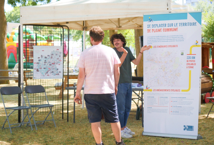 À l’occasion de « L’Été à Villetaneuse » édition 2022, la municipalité de Villetaneuse a proposé à ses habitants le mercredi 3 août dernier une « Journée Vélo » au Parc Carnot ouvert à toutes et tous. Au programme : initiation pour les petits à la sécurité routière des cyclistes avec l’association « Tous en selle » avec un parcours balisé ; un stand de réparation de vélo avec l’association « Villet’Amap », un stand de présentation de location des vélos à assistance électrique « Véligo », un service d’Île-de-France mobilités (40€ par mois pendant 6 mois). Et pour finir, un stand de sensibilisation à la mobilité à vélo avec Plaine Commune. En vue des Jeux Olympiques et Paralympiques 2024, de nombreux itinéraires à vélo sont créés sur le territoire de Plaine Commune. Objectif : 220km de pistes cyclables à terme.