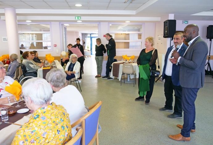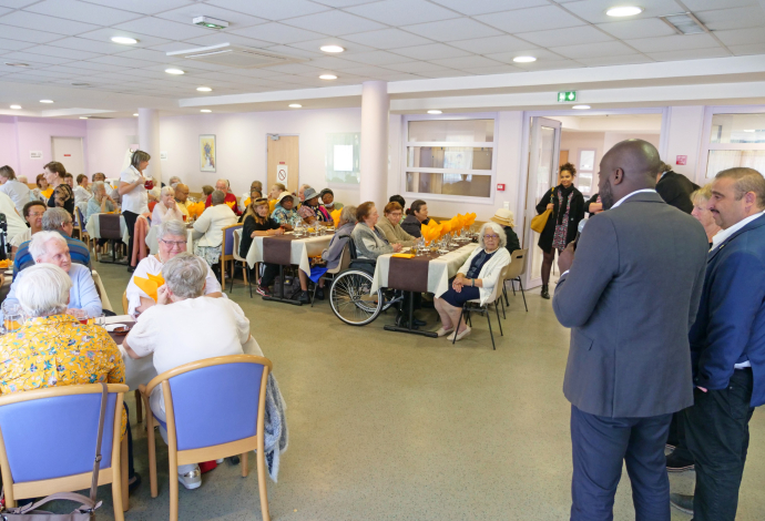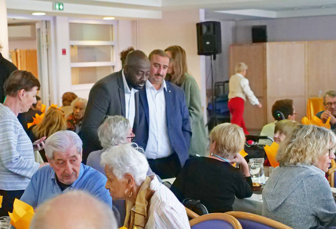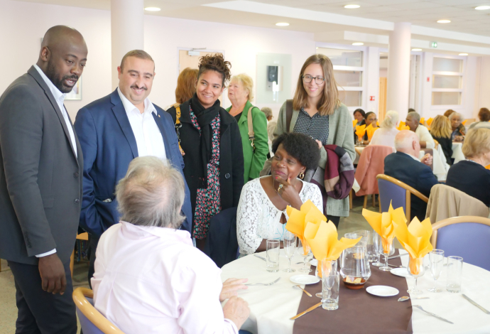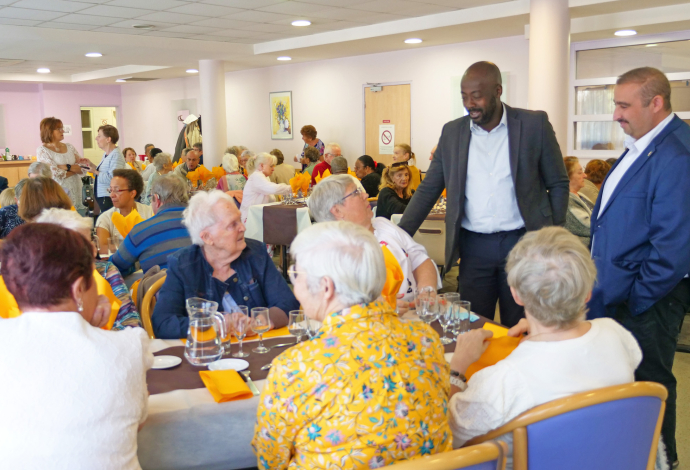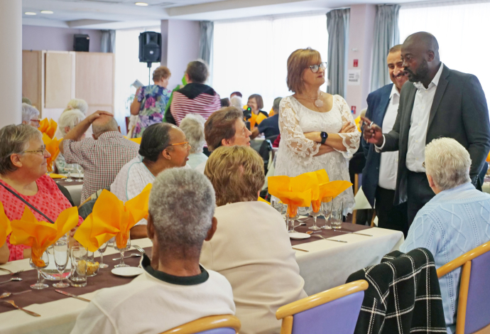 Nouveau repas festif et dansant au Pôle Seniors en ce 21 septembre 2022. Dieunor Excellent, Maire de Villetaneuse, est venu dialoguer avec les seniors et toute l’équipe de la résidence "Les Pivoines". Le Maire était accompagné de Danielle Marmignon, Adjointe au Maire déléguée au cadre de vie, au développement durable, aux mobilités, à la propreté et aux espaces verts et de Majide Ammad, Adjoint au Maire délégué à la petite enfance, à la restauration scolaire, aux seniors et à l’action sociale.
