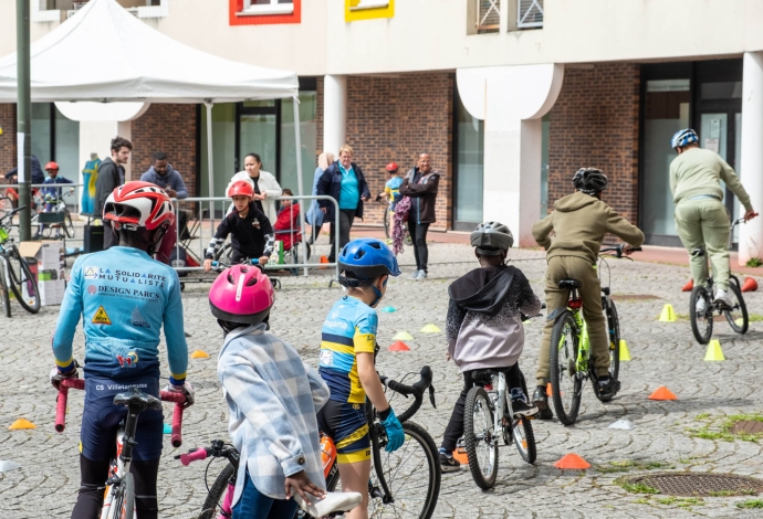 Découvrez en photos la journée festive de clôture des sessions gratuites d'apprentissages du vélo aux enfants et aux mamans. Fête de la mobilité qui a eu lieu le samedi 29 avril 2023 de 14 à 18h aux abords de l'Hôtel de Ville de Villetaneuse ainsi que dans la cour de récréation de l'école Jean-Baptiste Clément. Merci à toutes et tous d'être venus ! Crédit photos Plaine Commune : Christophe Fillieule, Fabrice Gaboriau et Raphaël Fournier.