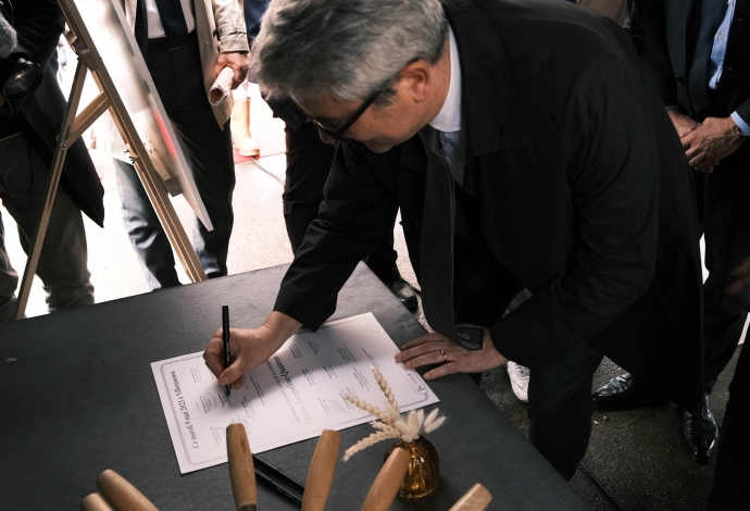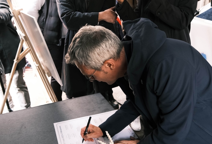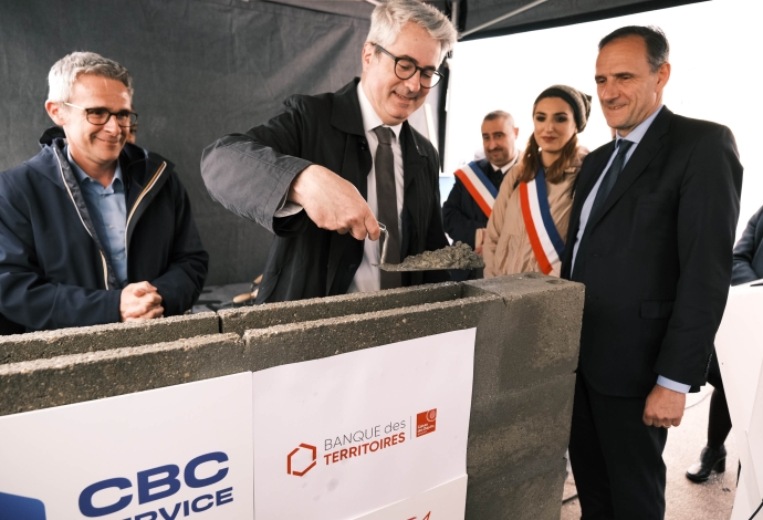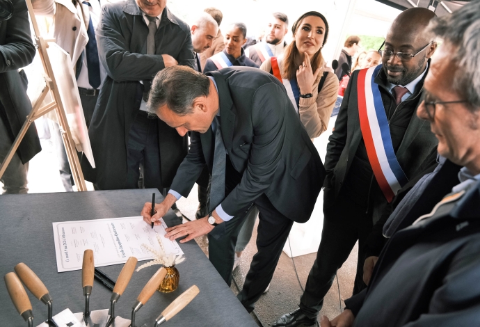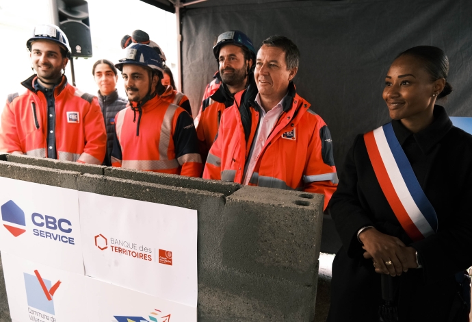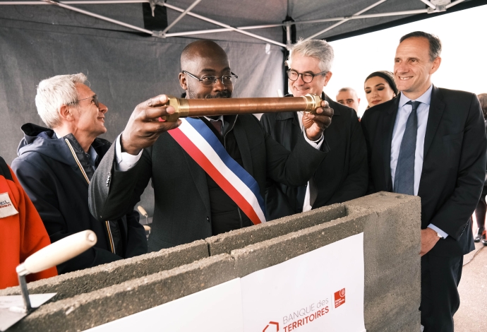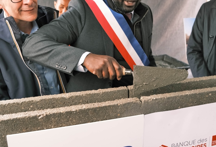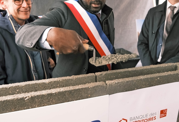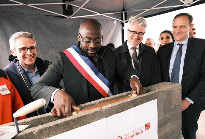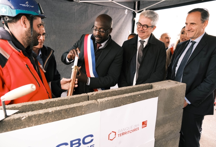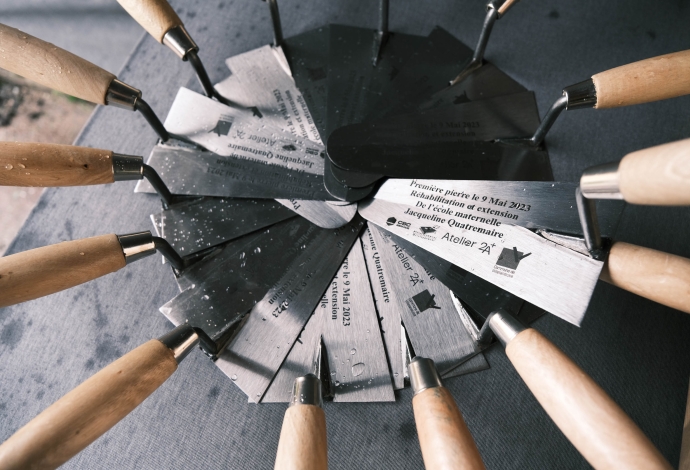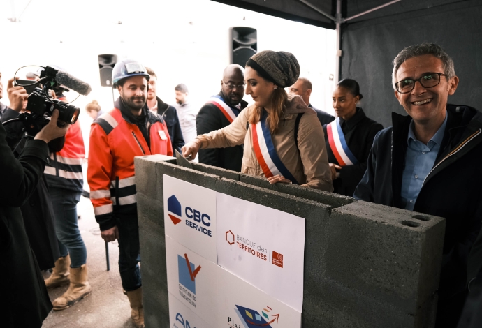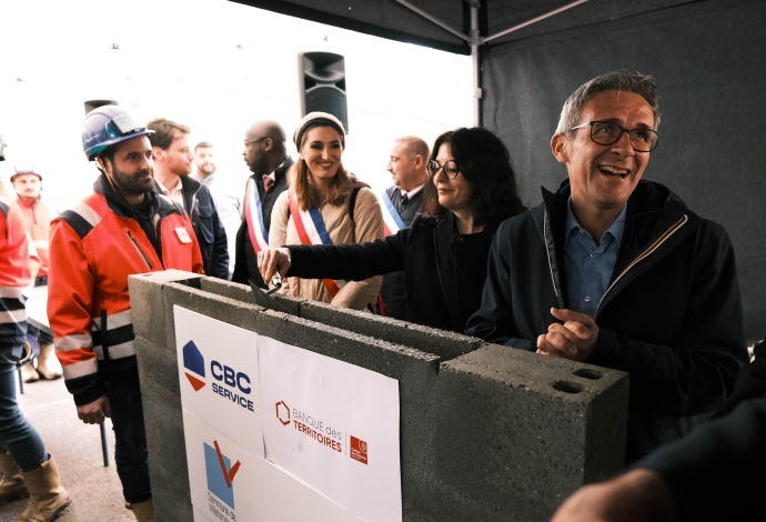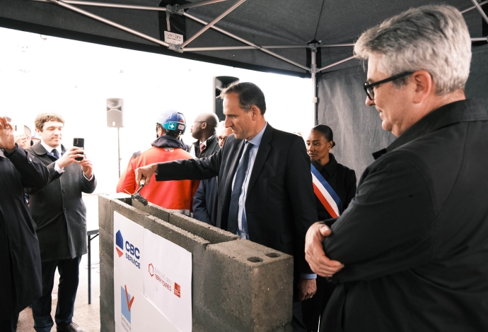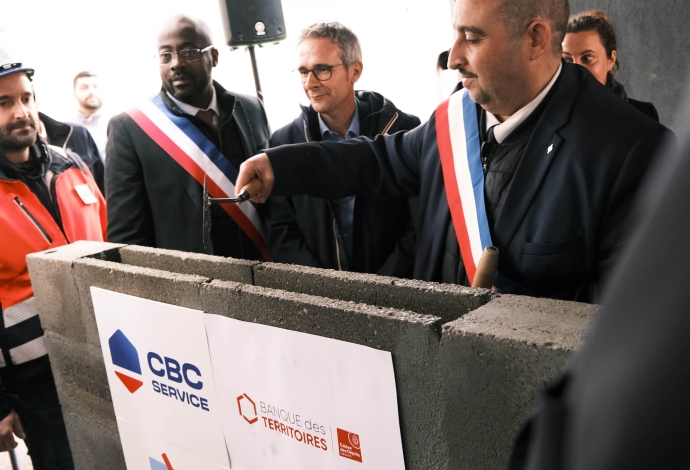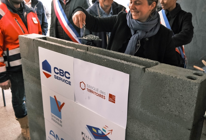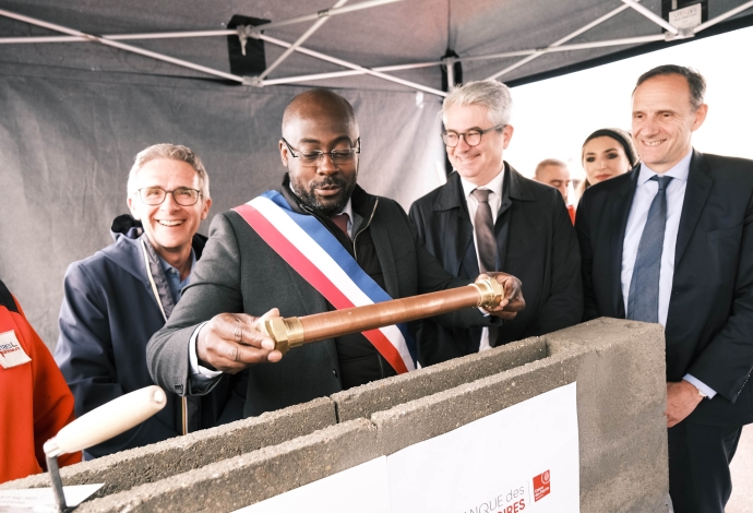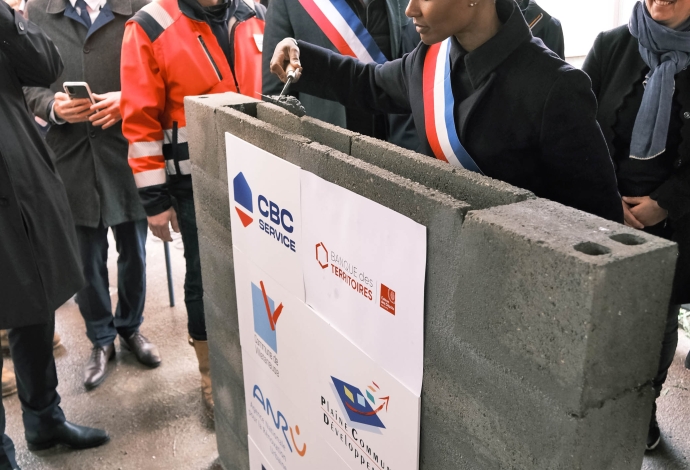 Pose de la première pierre de la future école Jacqueline-Quatremaire