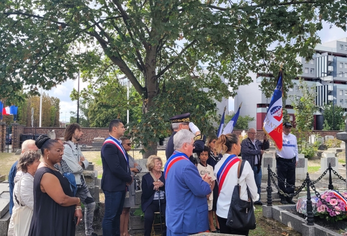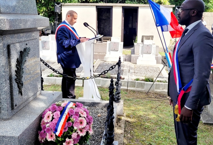 Commémoration du 79ème anniversaire de la Libération de Villetaneuse par la Résistance et les Forces Alliées en 1944, officié par Dieunor EXCELLENT, Maire de Villetaneuse, aux côtés des élus, de représentants d'institutions publiques et d'habitants pour rendre hommage à Maurice GRANDCOING, Ernest SIEGRIST, Delphine PRESSET, Gaston NOREUX, Yvon LECLERCQ et Pierre LOUIS, villetaneusiens morts pour la Liberté. Après le dépôt de plusieurs gerbes devant les stèles commémoratives des résistants et devant le monument aux morts, le Maire a rappelé l'importance de notre devoir de mémoire envers celles et ceux victimes de la haine et de l'oppression. Comme l'affirmait la résistante française Lucie Aubrac, citée lors de la commémoration : « Le verbe résister doit toujours se conjuguer au présent ».