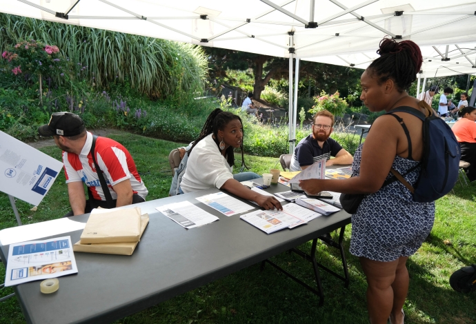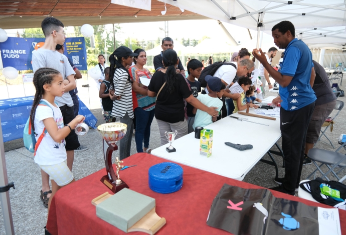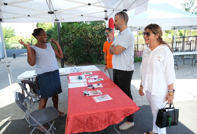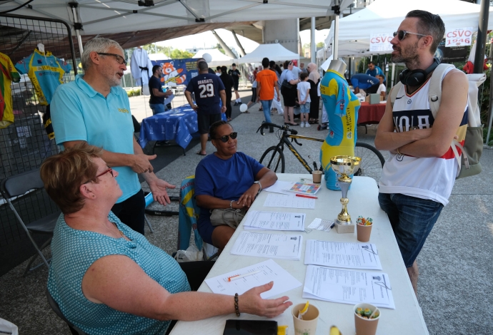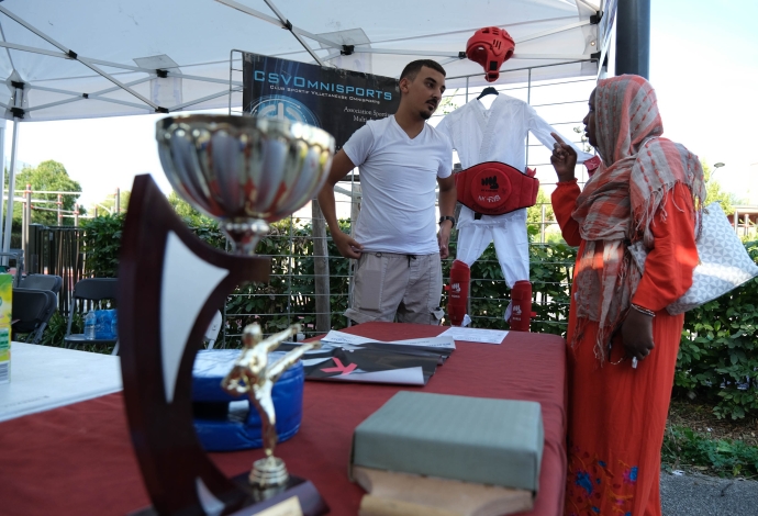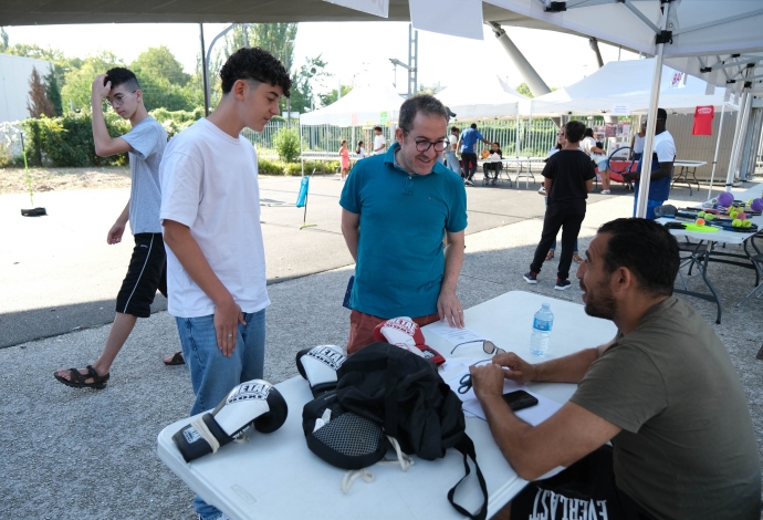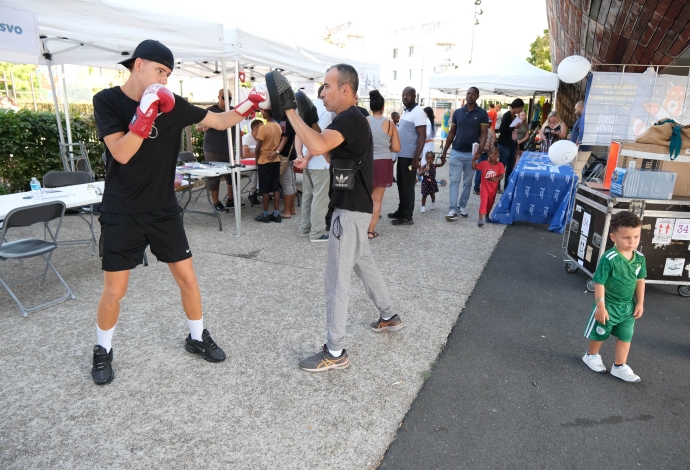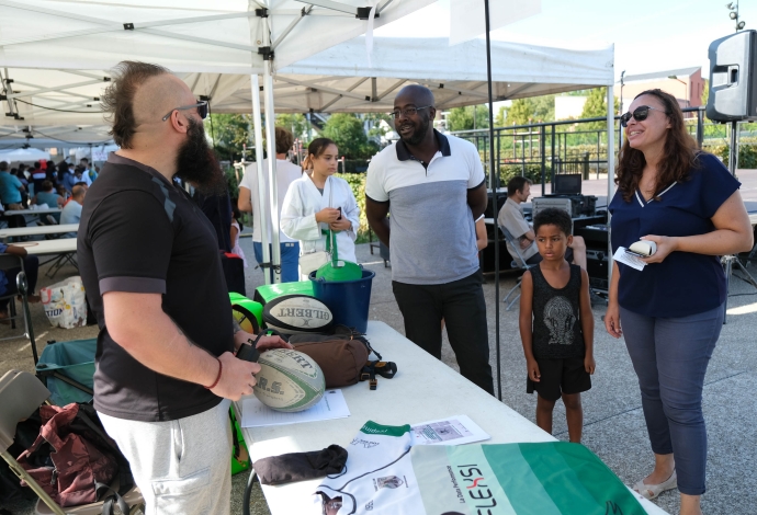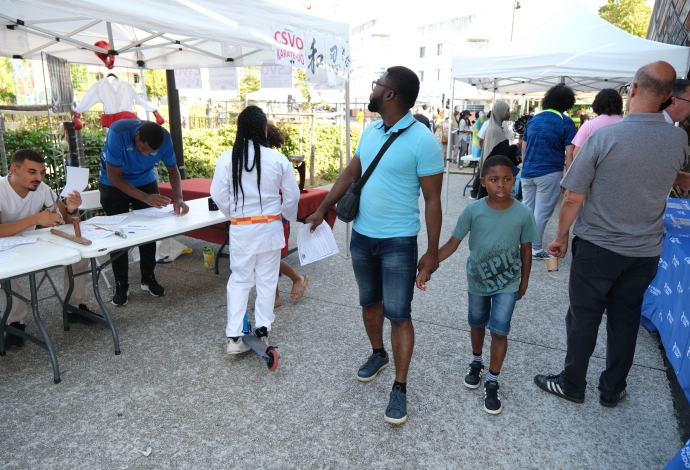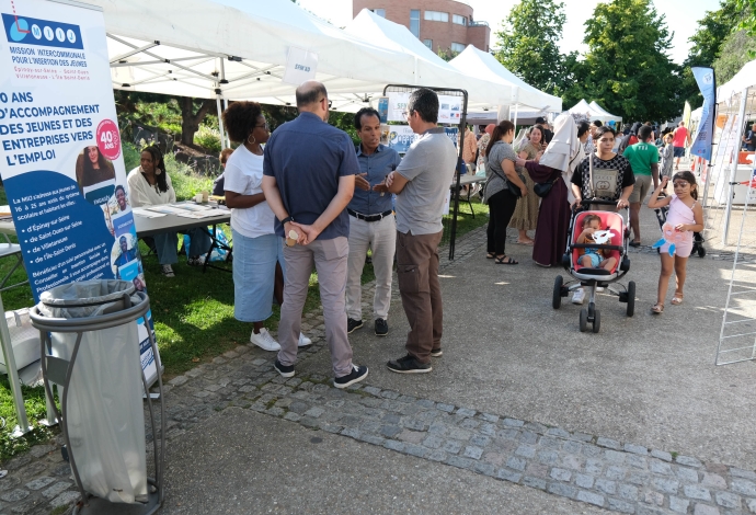 Les villetaneusiens et villetaneusiennes ont répondu présents samedi 9 septembre 2023 pour le Forum des Associations ! Culture, emploi, sports, solidarité locale, environnement, éducation… Vous avez pu rencontrer, échanger et partager avec plus de 30 associations sur place. Autrefois appelé « Forum de la rentrée », ce forum édition 2023 fut dédié à la vie associative et locale à Villetaneuse. Au-delà des stands, le Forum était l’occasion à tous de tester ses performances sportives avec une tour de grimpe de plus de 8 mètres de haut. Côté animation, une scène avec des démonstrations sportives, des scénettes de théâtre, un défilé de mode et de la musique était présente place des Partages. Merci à toute et tous d’être venus !