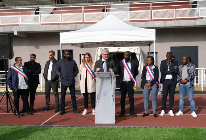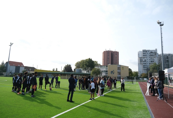 Revivez en images l'inauguration sportive et festive du stade Dian rénové à Villetaneuse qui s'est déroulée le samedi 30 septembre 2023 ! Avec la présence de M. le Maire Dieunor Excellent ; Vincent Lagoguey, Sous-préfet de la Seine-Saint-Denis ; Natacha Martinis, adjointe au Maire en charge du sport et Jeux Olympiques et Paralympiques de Paris 2024 ; Hassanatou Bah, adjointe au Maire en charge de l'entretien du patrimoine bâti ; Salif Sidibé, conseiller municipal délégué au développement des pratiques sportives et la municipalité. Cette rénovation représente un investissement de plus de 800 000€ (avec une participation de 340 000€ de l'État) pour offrir des conditions de pratique optimales aux sportifs de Villetaneuse. Villetaneuse est fière d'être une ville sportive !