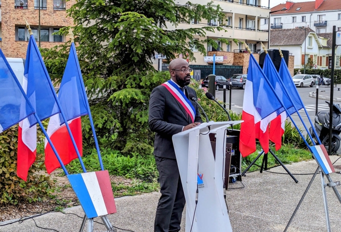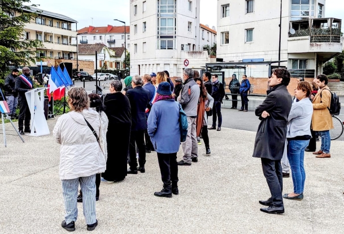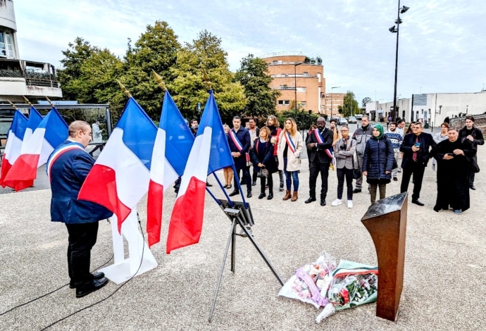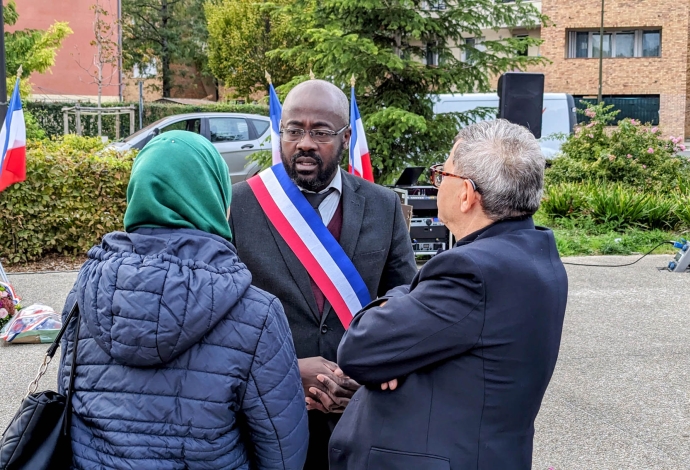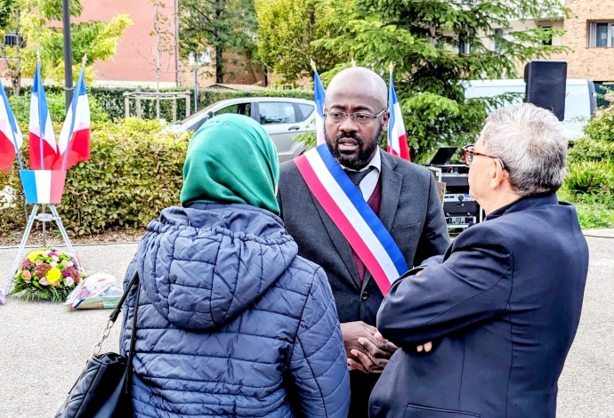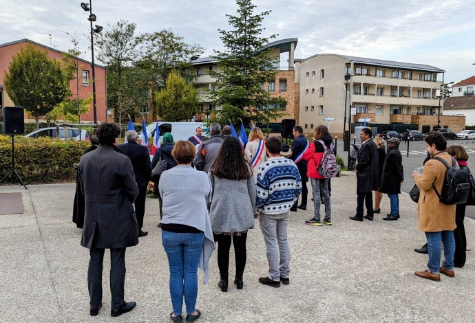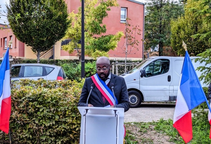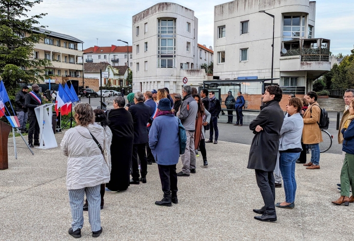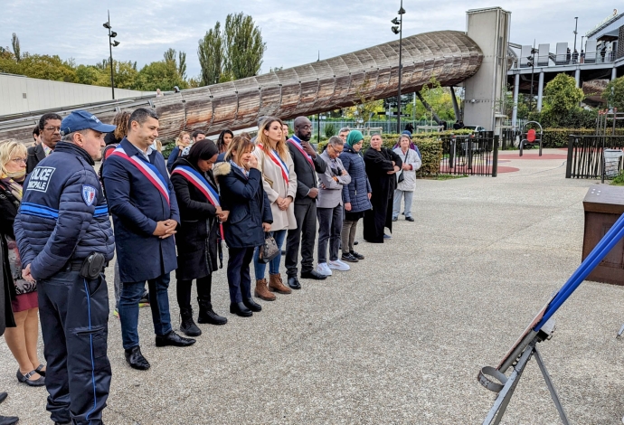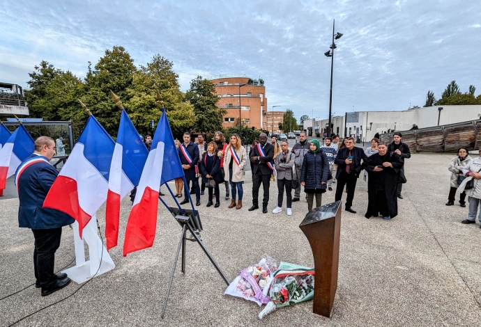 La municipalité a organisé le 17 octobre 2023 la commémoration du massacre du 17 octobre 1961, en présence de M. le Maire Dieunor Excellent ; de la Vice-consule d’Algérie, Madame Nadia Kelfah ; des adjoints du Maire Malek Ait Arkoub, Majide Ammad, Hassanatou Bah et Natacha Martinis, des conseillères municipales Noëllise Gibon et Fathia Belguesmia et de villetaneusiens venus en nombre. Il y a 62 ans, des dizaines de milliers d'Algériens descendaient dans les rues pour protester contre le couvre-feu décrété par le préfet de police, Maurice Papon. La répression policière a été immédiate et d'une sévérité inouïe. Ce crime a été dissimulé et nié, pendant des décennies, par une police coupable et une administration et un pouvoir politique qui ont laissé faire. Dieunor Excellent a réitéré notre engagement de longue date pour la reconnaissance pleine et entière de ce crime qu’a commis la police française. Le Maire a aussi pu rappeler le difficile chemin de la vérité, et rendre hommage aux historiens, aux acteurs associatifs, et aux responsables politiques qui depuis soixante ans, se battent pour que la République regarde en face cette part de son histoire. Pour clôre cette séquence mémorielle, la municipalité a ensuite proposé une projection du documentaire "Rock Against Police", de Nabil Djedouani, qui revient sur le mouvement musical qui s’est développé dans les années 1980 pour dénoncer notamment les violences policières. À Villetaneuse, nous nous engageons pour des mémoires vivantes, partagées et sincères, qui sont une condition de l’harmonie de notre nation.