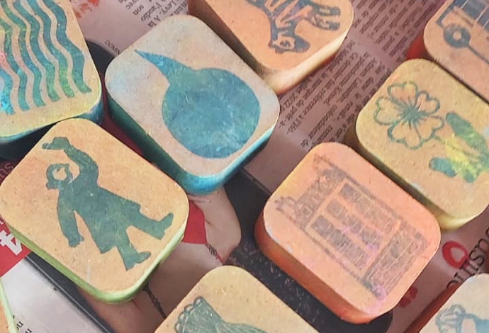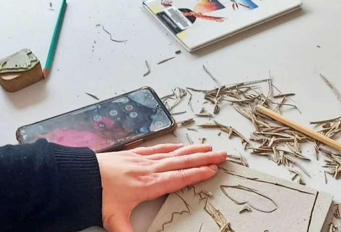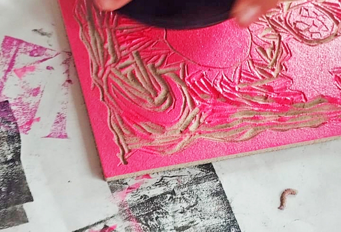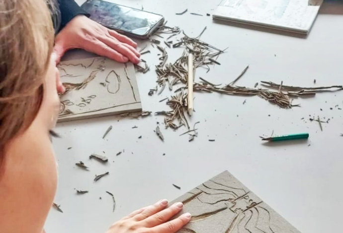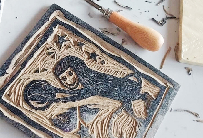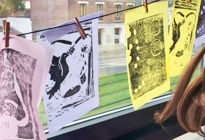 Atelier créatif linogravure de cordel à la médiathèque Annie-Ernaux