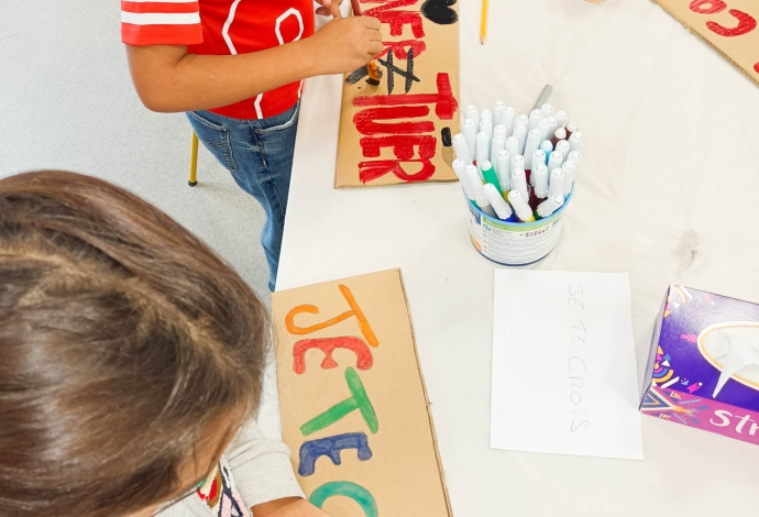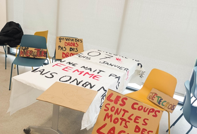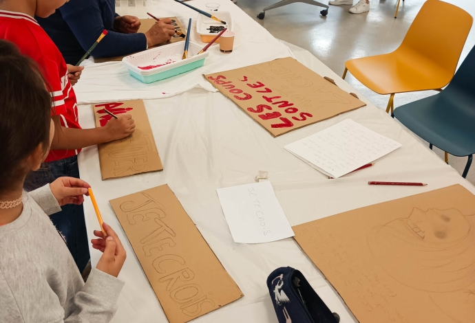 Atelier pancartes contre les violences faites aux femmes avec l'association Banlieue Rose