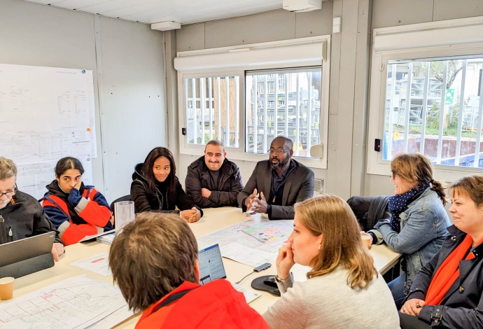 Le mercredi 8 novembre 2023, M. le Maire Dieunor Excellent a participé à la réunion de chantier hebdomadaire de l’école Quatremaire aux côtés de ses adjoints Majide Ammad et Hassanatou Bah, les équipes municipales, l'architecte Florence Grall, la SPL Plaine Commune Développement et les représentants de l’entreprise CBC. Semaine après semaine, les travaux avancent selon le calendrier prévu. Après les étapes de préparation des fondations, l'extension du bâtiment côté rue Carnot commence à prendre forme. Le chantier continuera à être suivi de près, afin de garantir la rentrée des élèves dès septembre 2024.