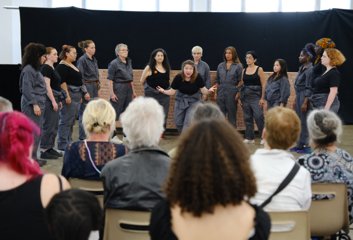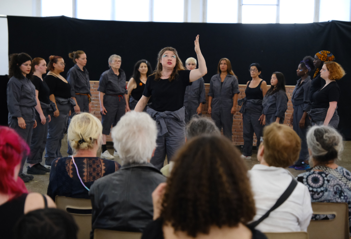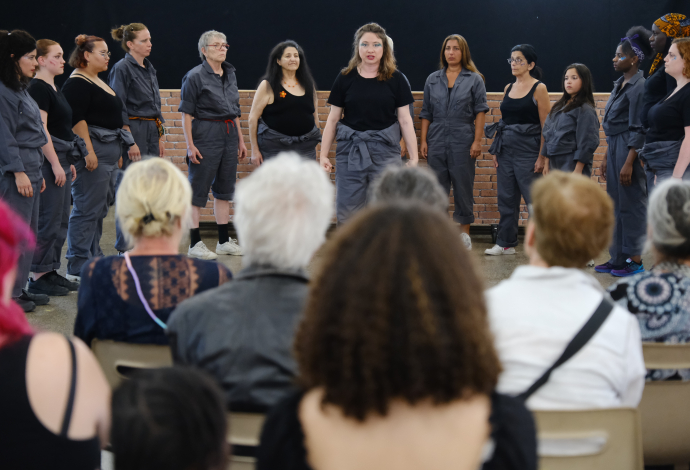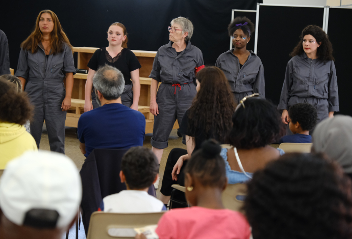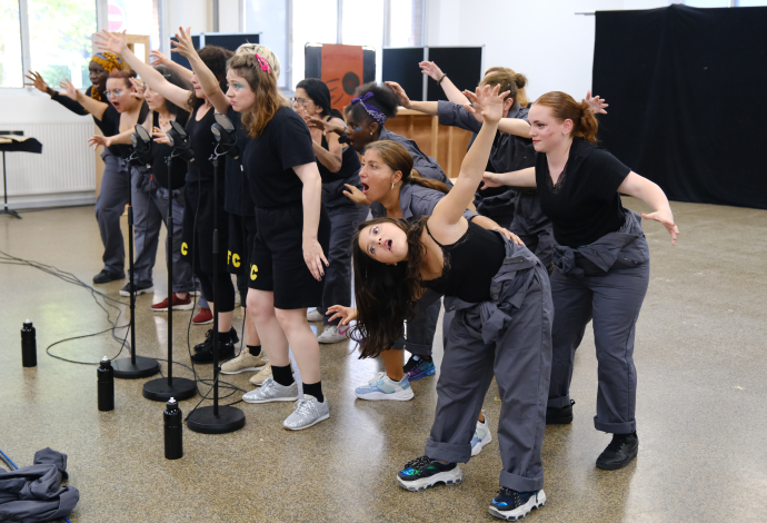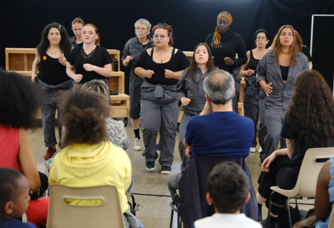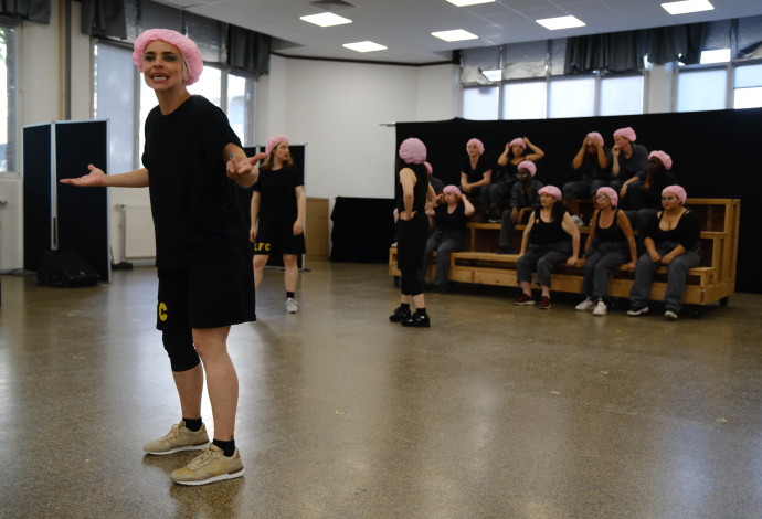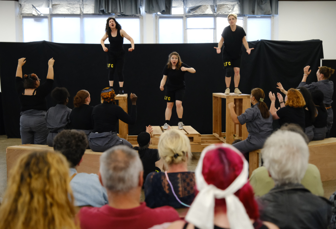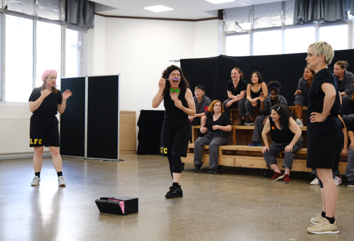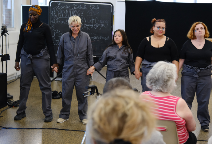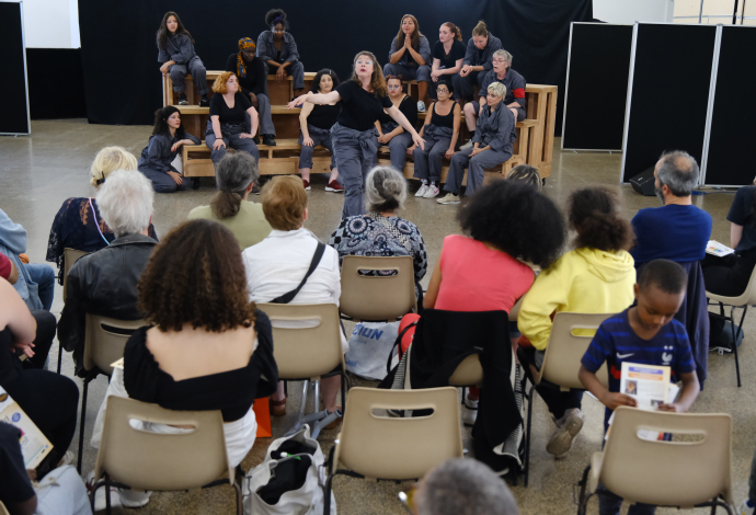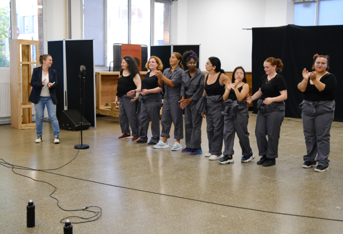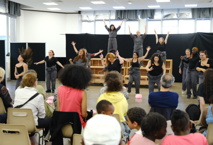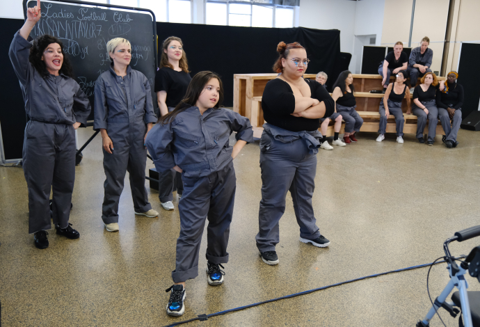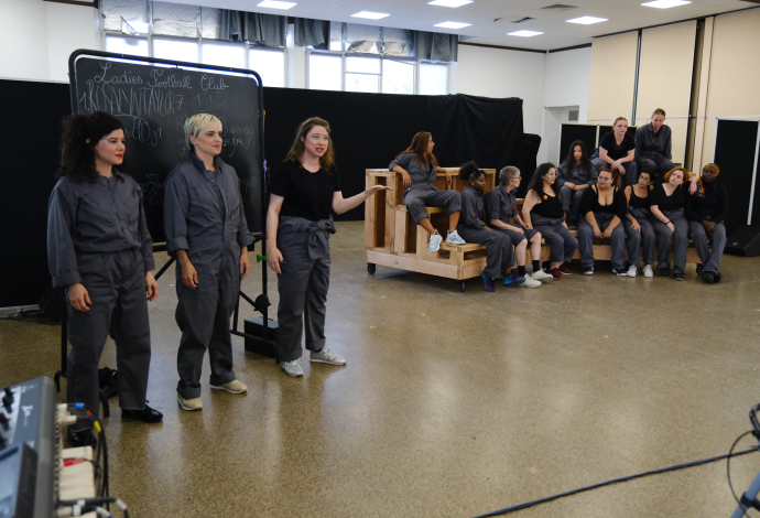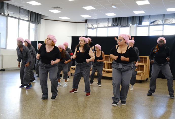 Vendredi 5 juillet, l’espace motricité de l’école Jean-Baptiste-Clément s’est transformé en salle de spectacle doublée d’un terrain de football ! Ce jour-là, on jouait l’adaptation théâtrale par la Compagnie « Les Enfants du Paradis » d’un roman écrit par le dramaturge italien Stefano Massini, le « Ladies Football Club », une histoire de la naissance du football féminin en Angleterre, mêlant humour et politique. 6 avril 1917. Première Guerre mondiale. Lors d’une pause déjeuner dans une usine où les femmes participent à l’effort de guerre en fabriquant des armes, onze ouvrières improvisent un match de foot avec un prototype de bombe qui traînait là. Particularité de ce spectacle : la participation de 14 habitantes de Seine-Saint-Denis, dont des Villetaneusiennes, parfaitement amateures, qui ont répété depuis février dernier, encadrées par 3 comédiennes professionnelles et mises en scène par Géraldine Szajman. Une très belle prestation saluée par Florence Laroche, Conseillère municipale déléguée à la Culture