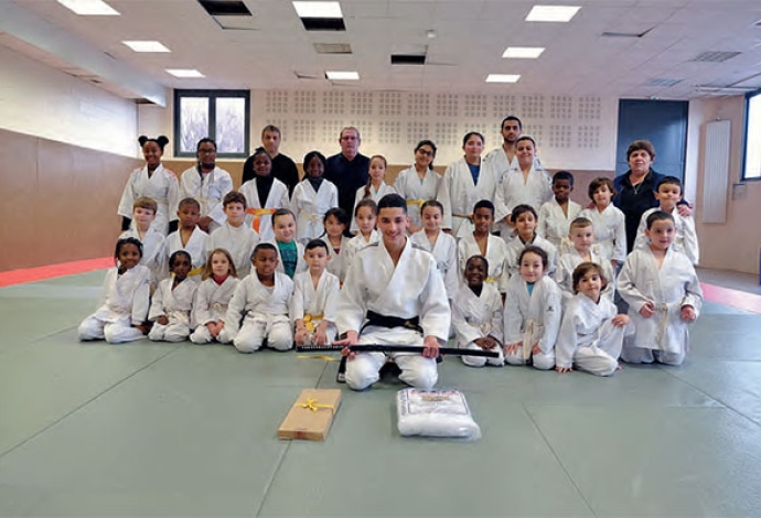 Mars : à la section Judo du CSV, cérémonie de remise de ceintures… Et pour le plus fort : la ceinture noire, gravée à son nom, le kimono et le sabre katana !