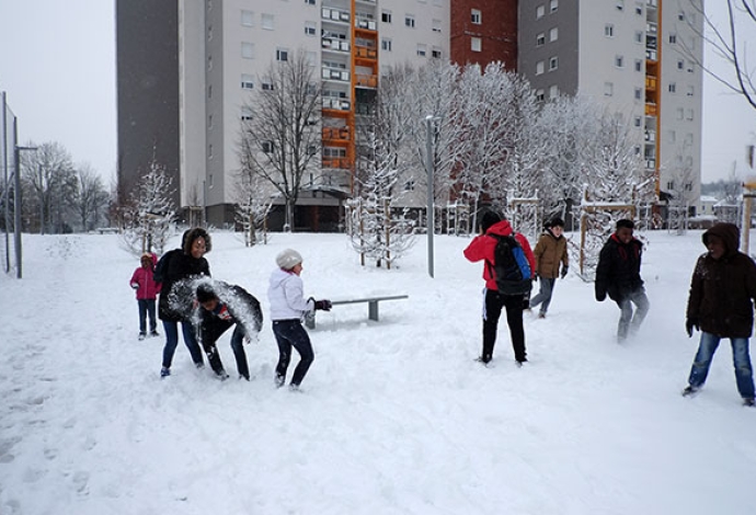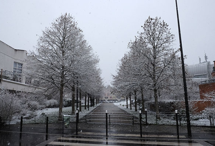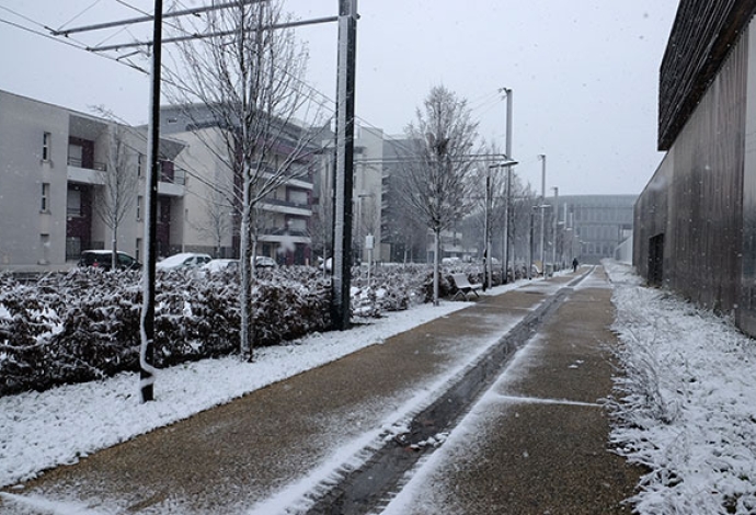 Reconnaissez-vous la ville ainsi recouverte de neige ? Cette neige qui amuse les enfants, alors que s'affairent les agents du service voirie de l'Agglo....