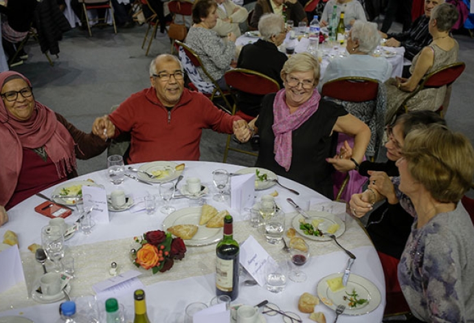 Pour finir avec Roberto Milesi à l'accordéon sur un après-midi rythmé et dansant, en fête et avec bonne humeur, l'ensemble des retraités villetaneusiens était invité par la Ville au traditionnel banquet dans la grande salle Jesse Owens.