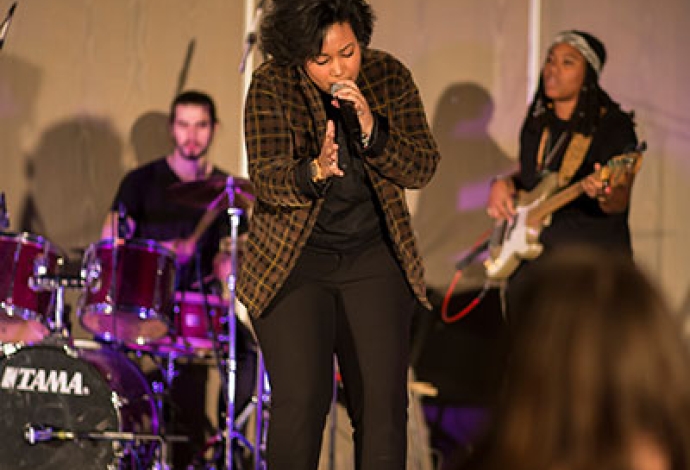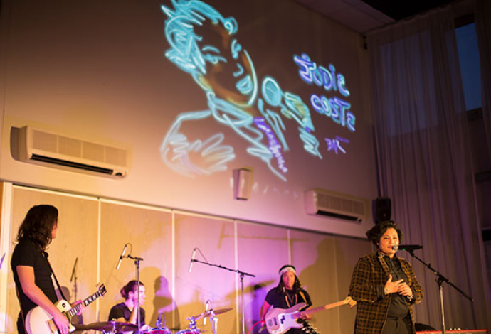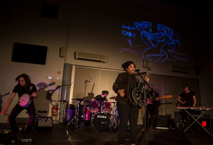 A Villetaneuse, tout le mois de mars est ponctué de rendez-vous autour de la condition féminine. Le 8 mars l'envoutante chanteuse Jodie Coste s'est produite en concert à l'hôtel de ville avec en arrière-plan des graffs en live par le grapheur Barth.