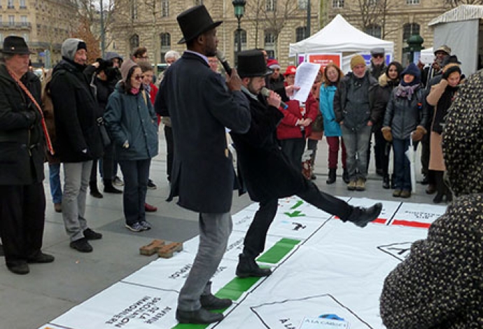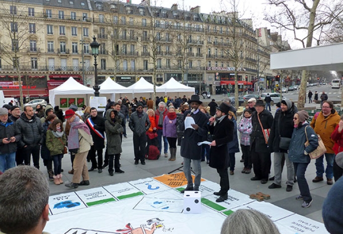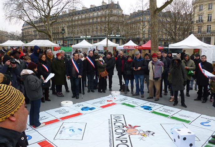Devant un jeu de «Macronpoly», symbolisant un Grand Paris avec la mainmise de l’Etat, nombre d’élus se sont retrouvés place de la République à Paris pour défendre la dimension locale des décisions et les projets de territoires.