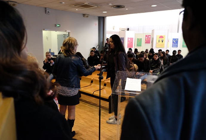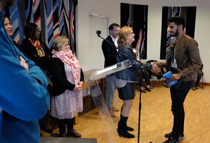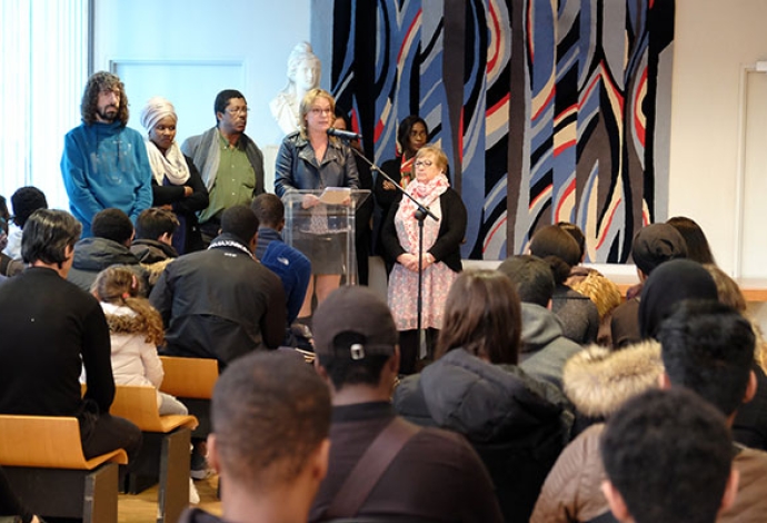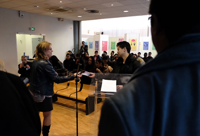 Carinne Juste, Maire, a remis carte électorale et livret citoyen aux jeunes Villetaneusiens en âge de voter et non encore inscrits sur la liste électorale. Ce geste symbolique souligne l'importance de l'entrée dans la citoyenneté.