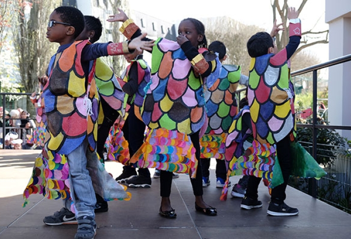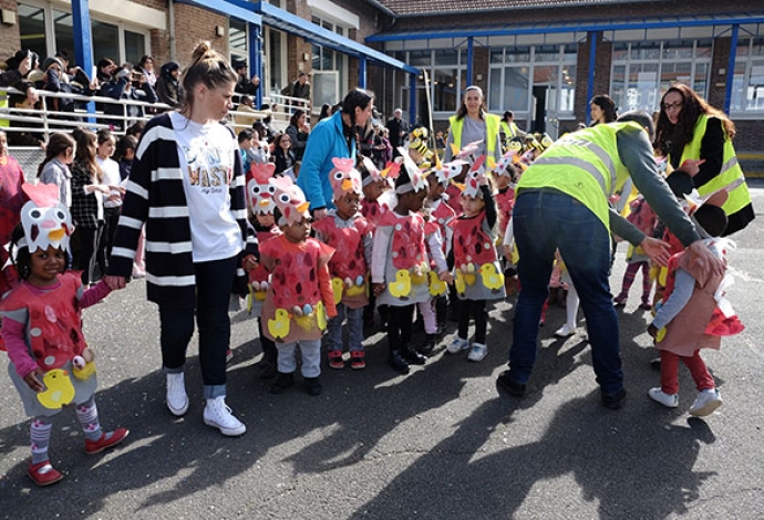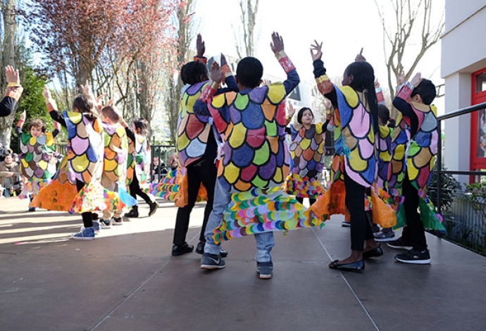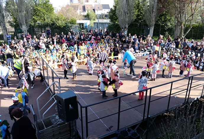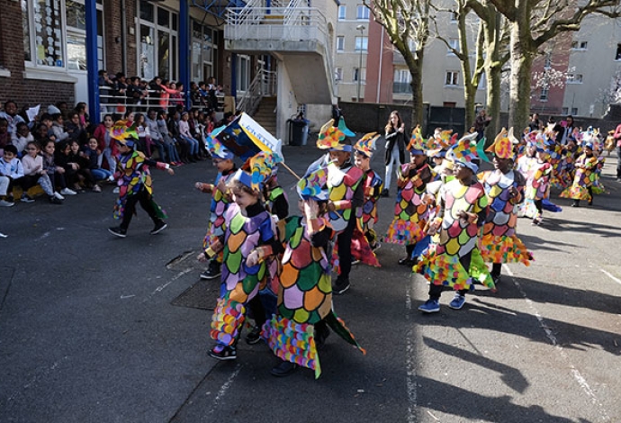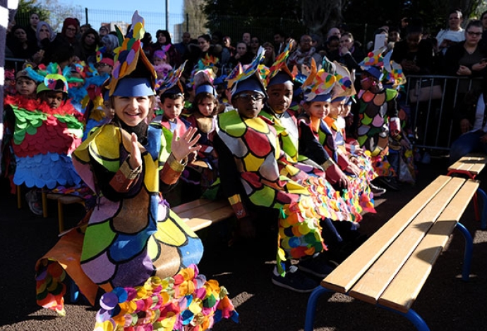 Bravo les enseignants pour ce magnifique carnaval à l'école maternelle Anne Frank ! Après une représentation sur scène devant les enfants et les parents, un défilé s'est déroulé dans la cour des grands de l'école Jean-Baptiste Clément.