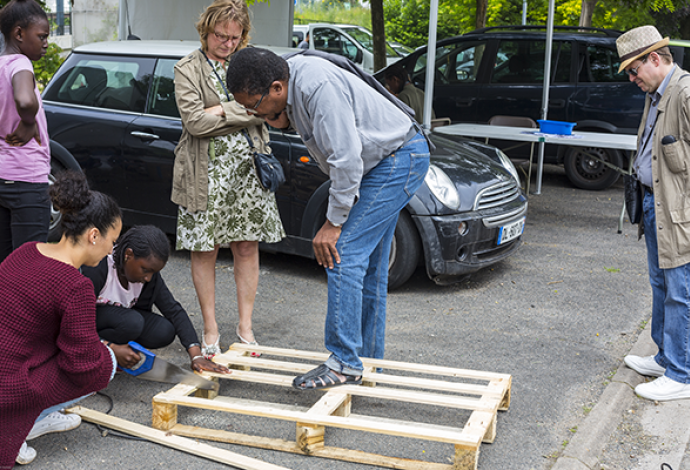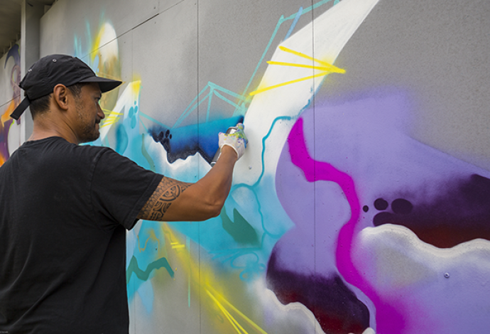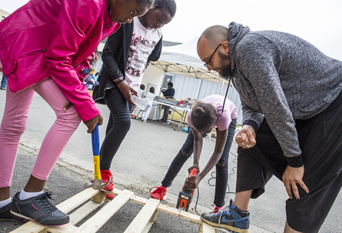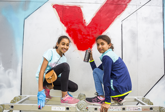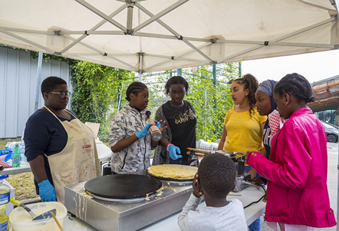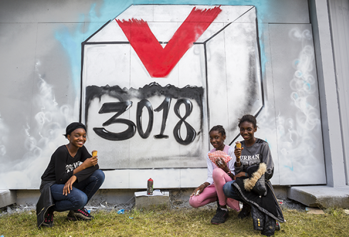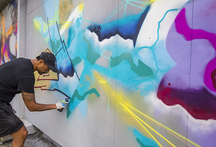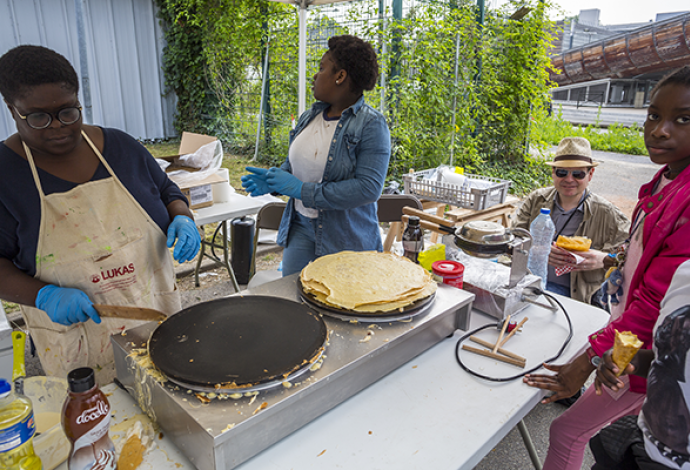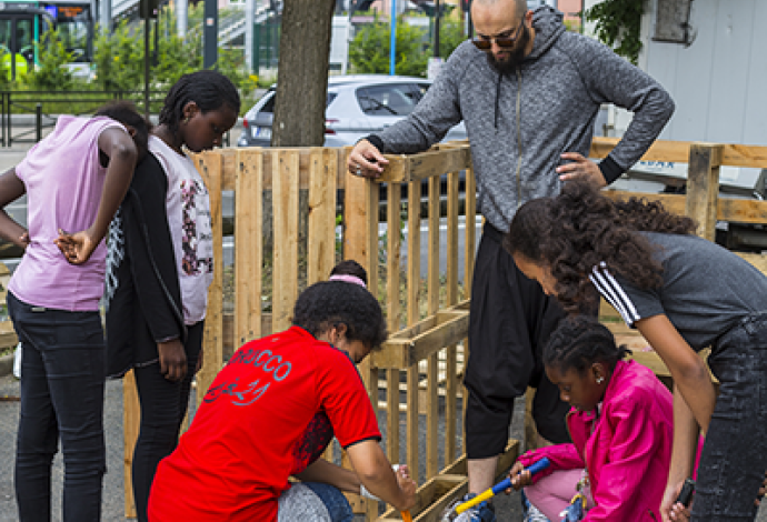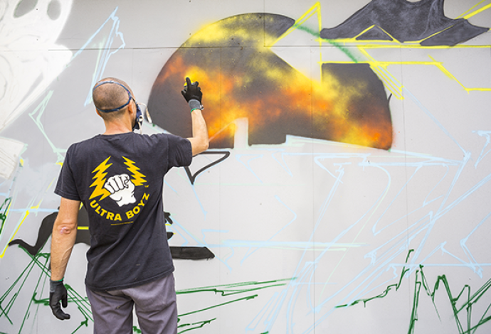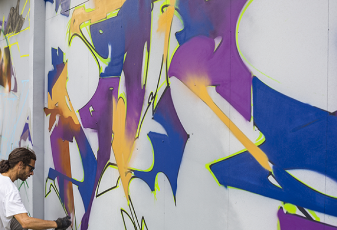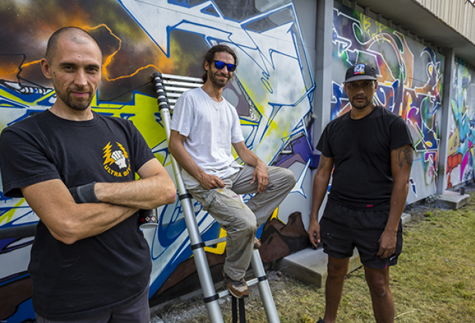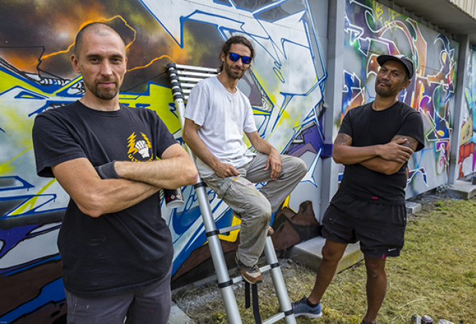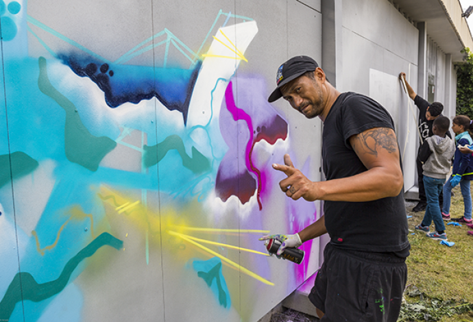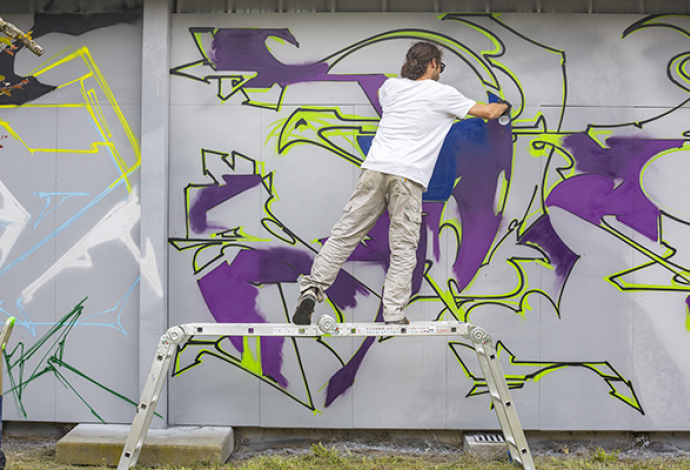 Piloté par l’association The Hundreds, le projet Evo’piscine a permis d'associer des Villetaneusiens pour créer ensemble des fresques géantes éphémères sur la façade de l’ancien centre nautique qui va être rénové en lieu culturel transitoire.