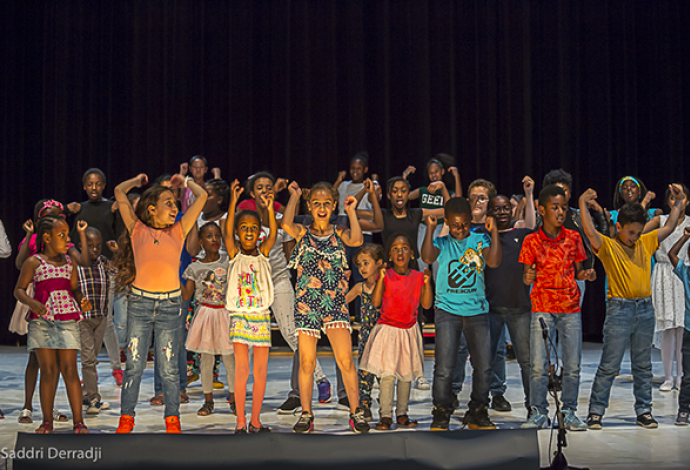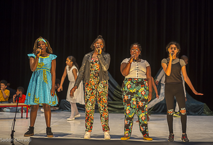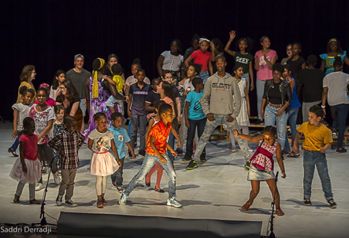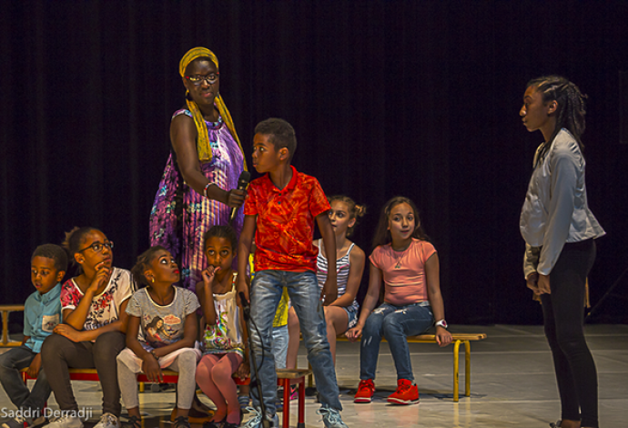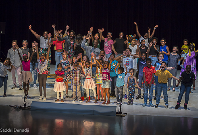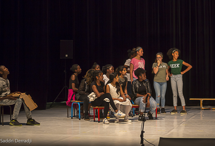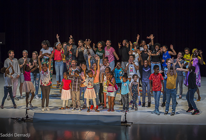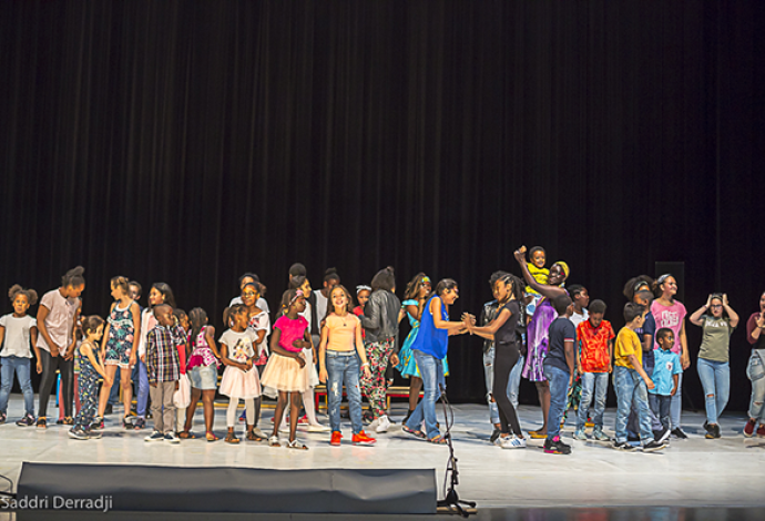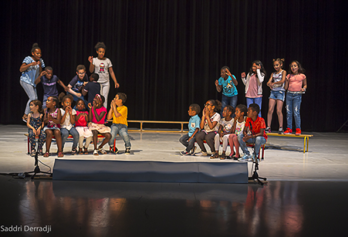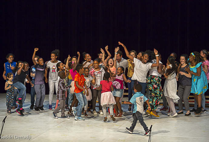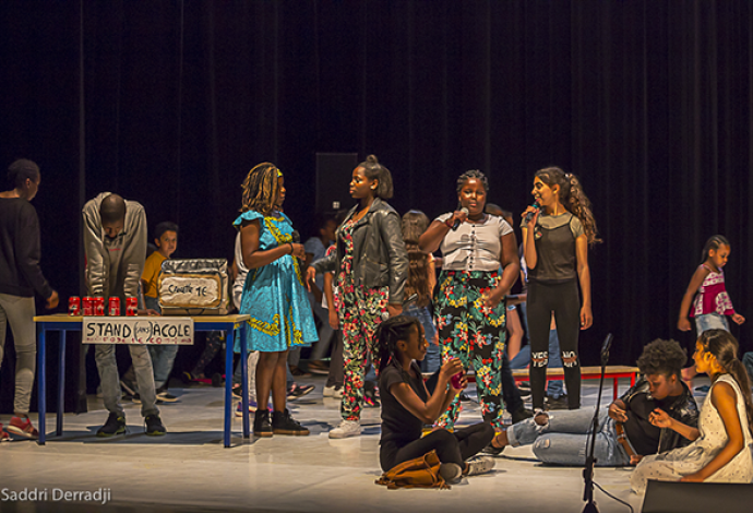 Après le spectacle « Samedi carrément » de Lionel Hoche, sur le thème de l'enfance, les particpiants au projet de la comédie musicale de Villetaneuse ont présenté leur travail.