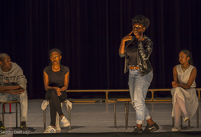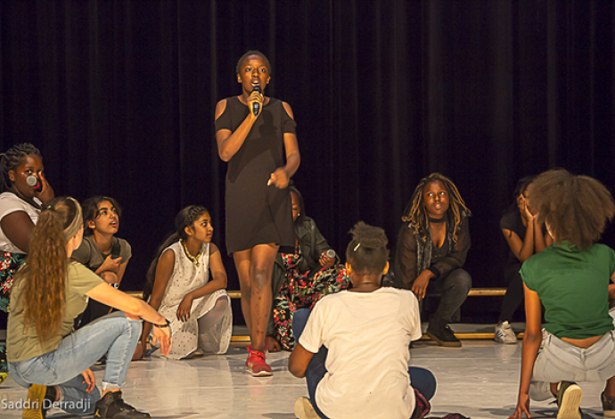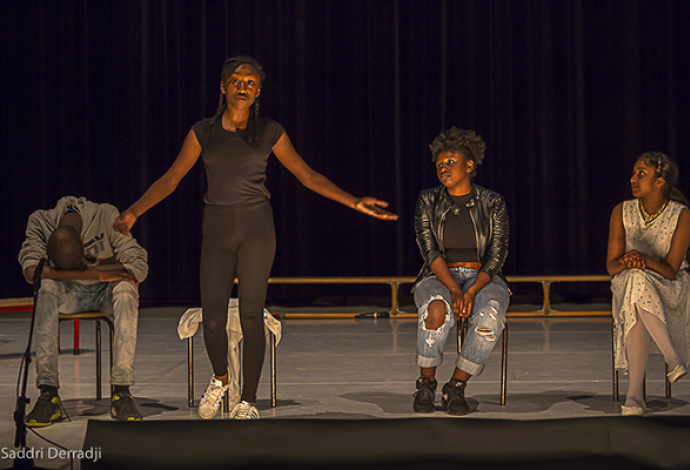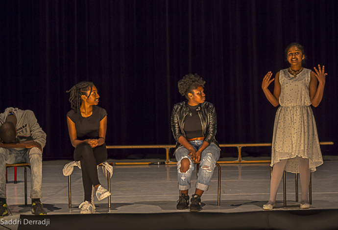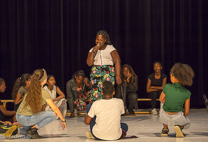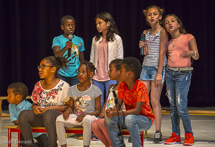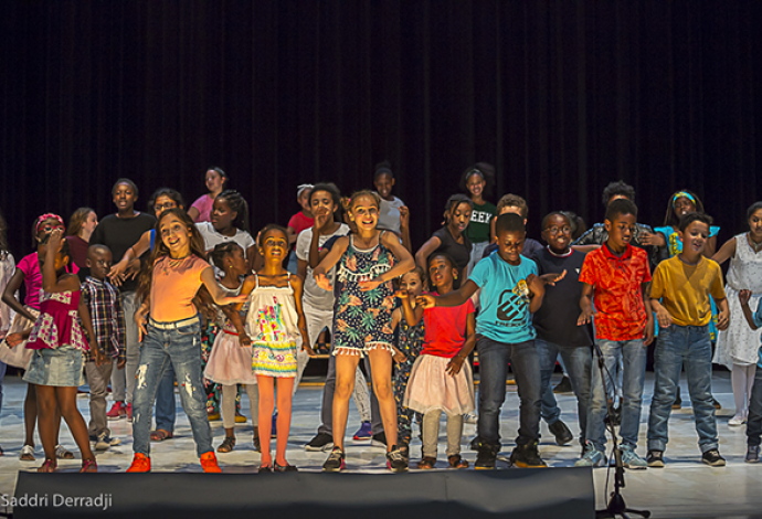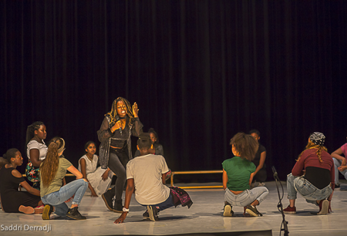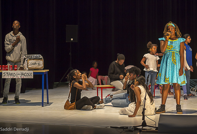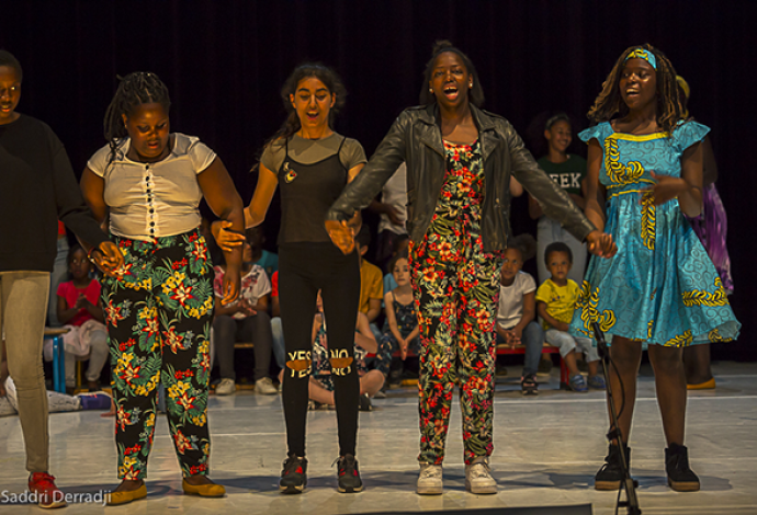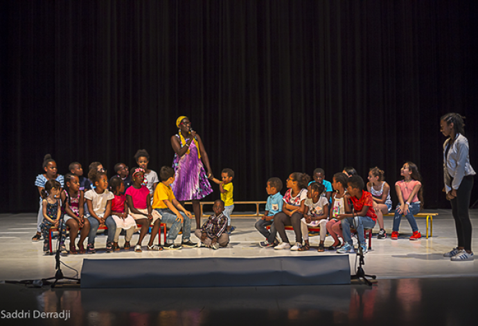 Après le spectacle « Samedi carrément » de Lionel Hoche, sur le thème de l'enfance, les particpiants au projet de la comédie musicale de Villetaneuse ont présenté leur travail.