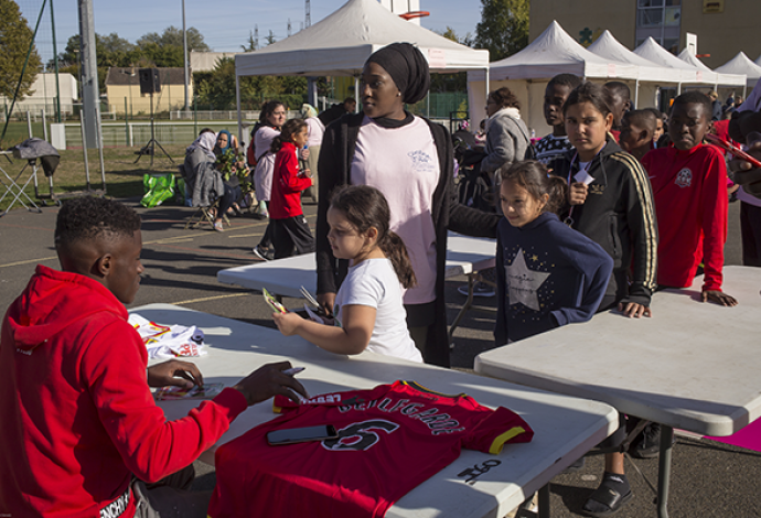 Sur de la zumba, les villetaneusiens se sont informés sur des questions santé : diabète, mst, cancer… J-R Bellegarde footballeur pro du RC Lens, ancien de Villetaneuse, a partagé quelques belles balles avec des jeunes d'ici et d'Allemagne.