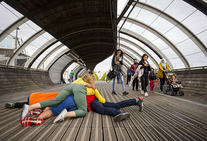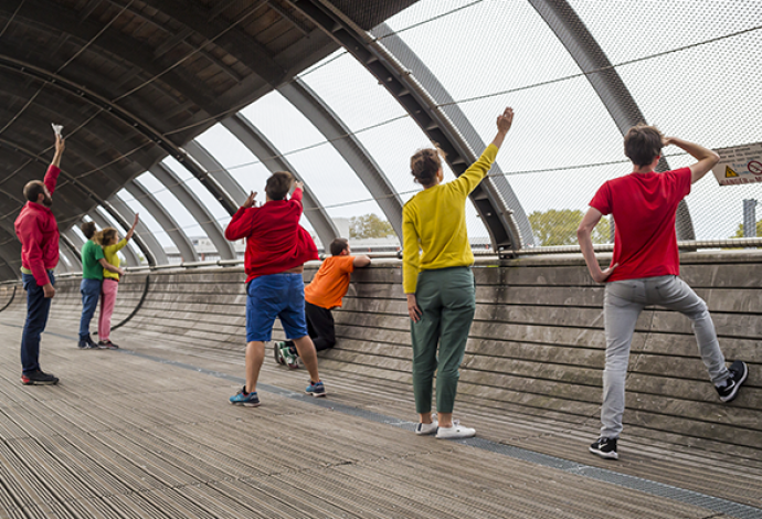 Samedi 22 septembre 4 temps forts étaient organisés pour les passagers du T11 - Express : spectacles de contes dans le tramway, danse contemporaine, théâtre, piquenique... Un parcours qui passait par la gare de Villetaneuse-Université sur la passerelle...