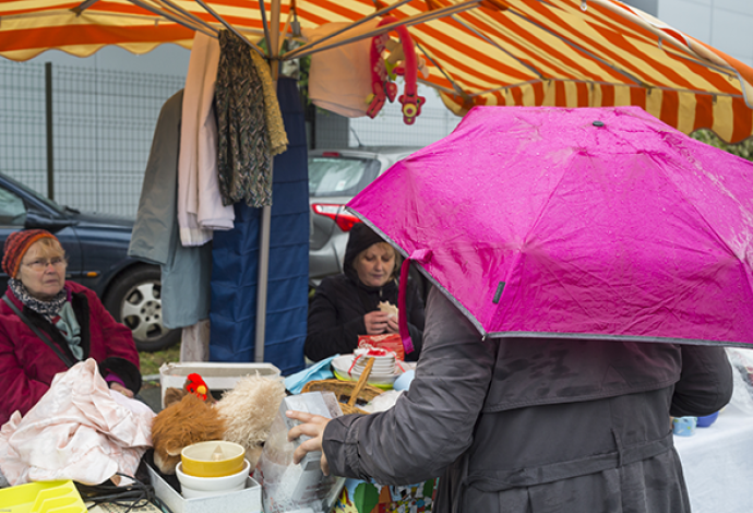 Brocante des étoiles : rires et parapluies