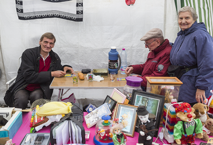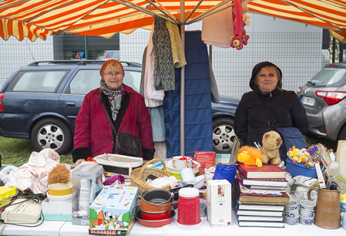 Rien ne pouvait entacher le moral des étalagistes lors de la brocante édition 2018. Même sous les parapluies, sourires et bonne humeur étaient au rendez-vous des bonnes affaires pour un dimanche familial à farfouiller dans les étals.