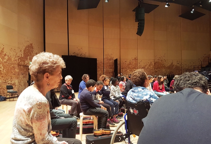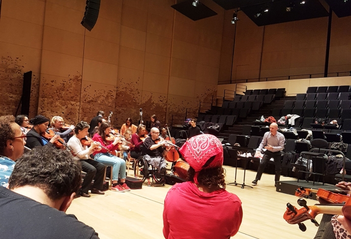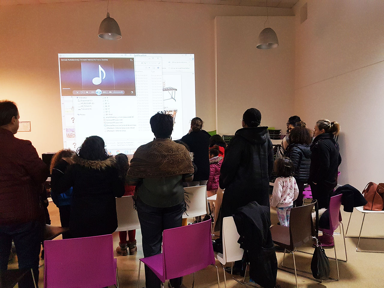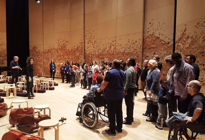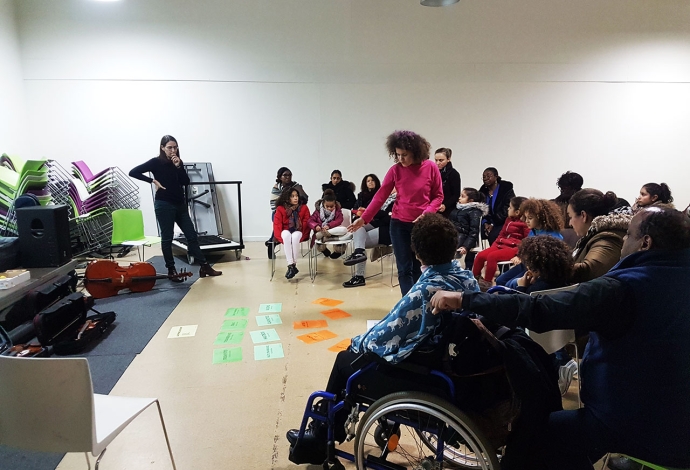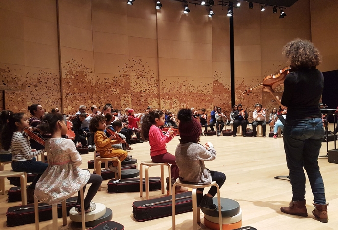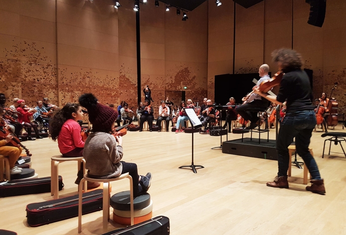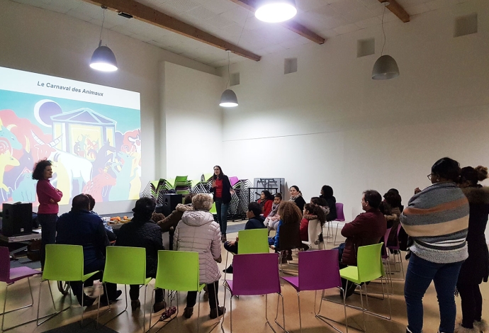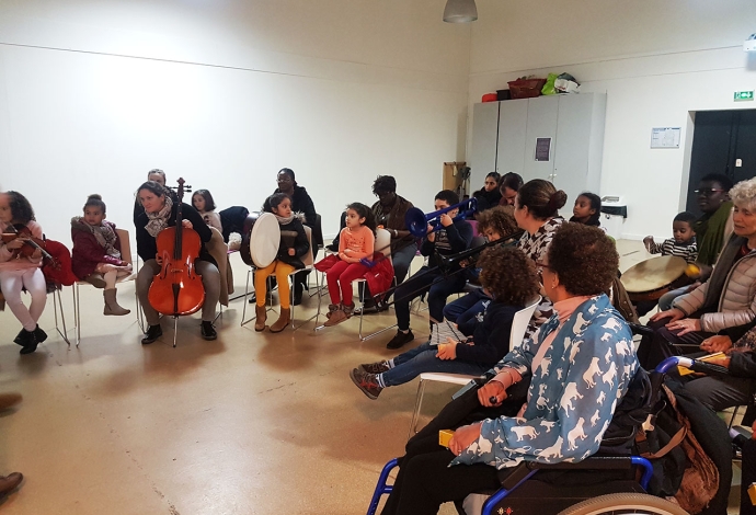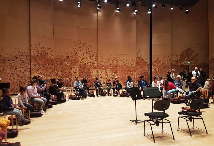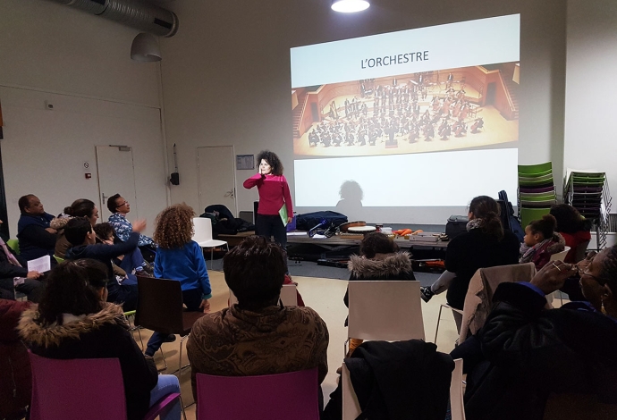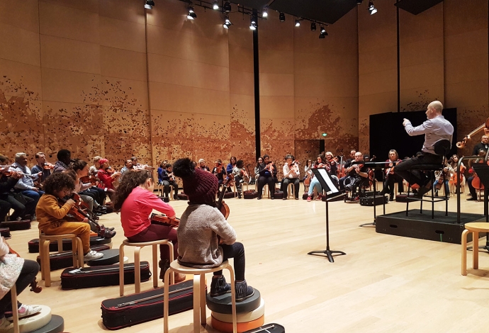 26 Villetaneusien.ne.s sont devenus musiciens d'orchestre pour interpréter «L'Eléphant» du «Carnaval des animaux» de Saint-Saëns. Avant cela en janvier des professionnels de la Philharmonie de Paris les avaient sensibilisés au Centre socioculturel.