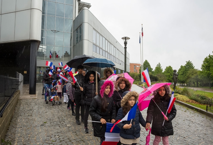C’est dans une ambiance festive que les enfants des clubs sportifs de Villetaneuse ont défilé le drapeau tricolore à la main aux côtés des habitants, des élus et des anciens combattants pour commémorer la fin de la seconde guerre mondiale. Carinne Juste, dans son discours a appelé à rester vigilent : « Ensemble, résistons comme ont su le faire nos parents et grands-parents, agissons pour un avenir meilleur et stable, qui affirme la reconnaissance de l’autre, le respect des différences, pour que vivent la paix et l’Amitié. »