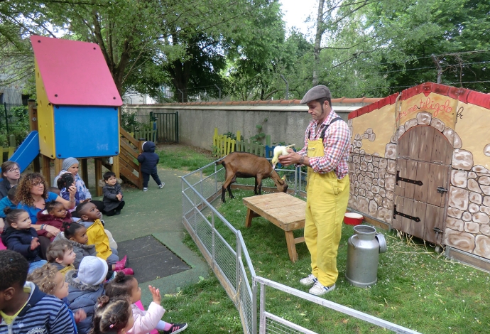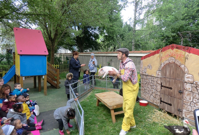 Les tout-petits sont toujours attirés et curieux devant des animaux qui bougent et émettent des sons rigolos. Partant de ce constat, la ville a souhaité leur offrir la possibilité de découvrir l'univers de la ferme directement au cœur de la Maison de la Petite enfance Pierrette-Petitot, grâce à l'intervention de la ferme enchantée de Monsieur Tiligolo.