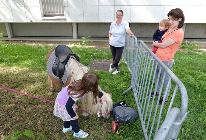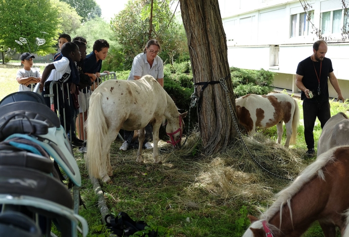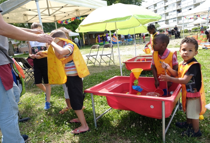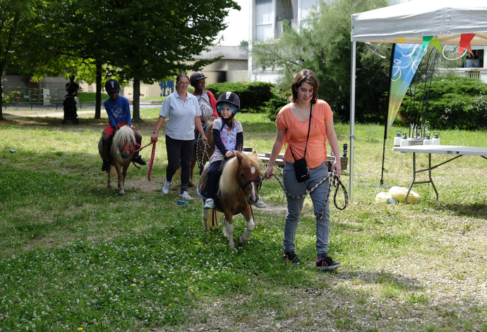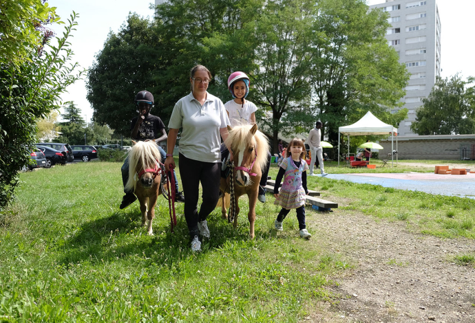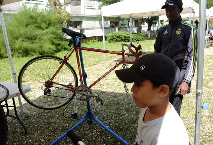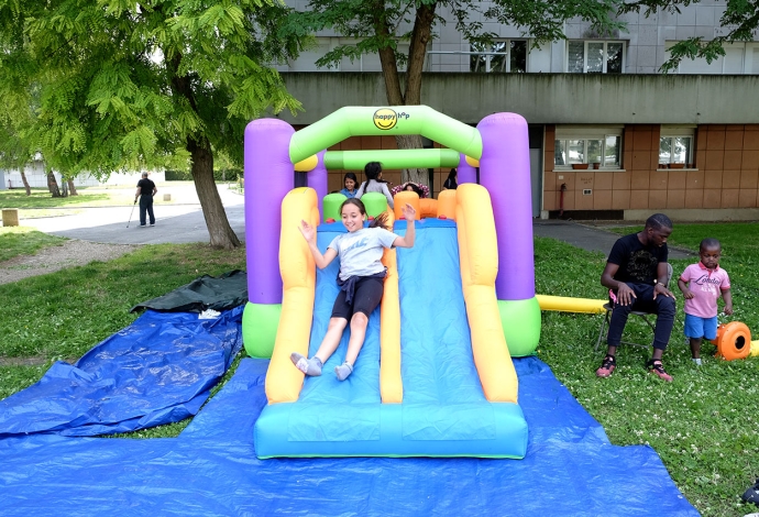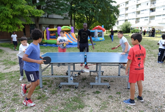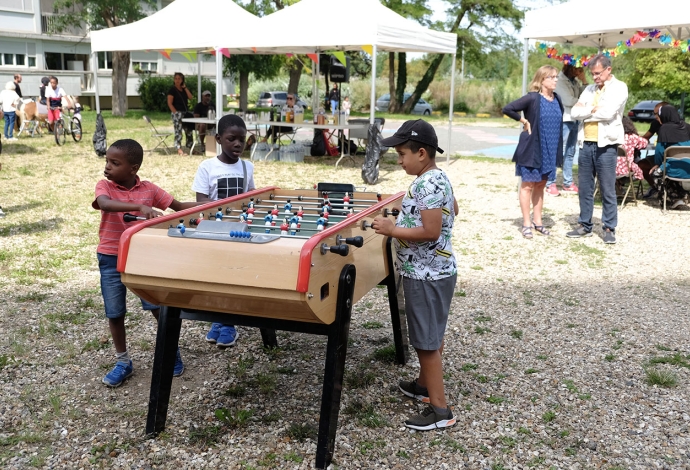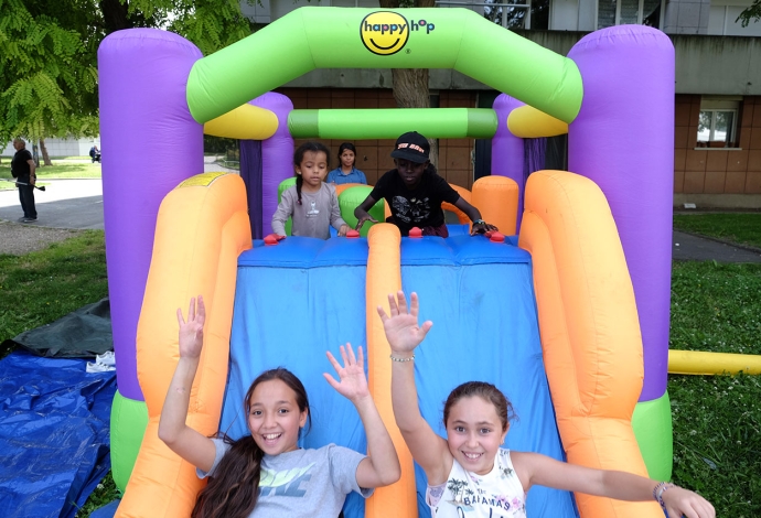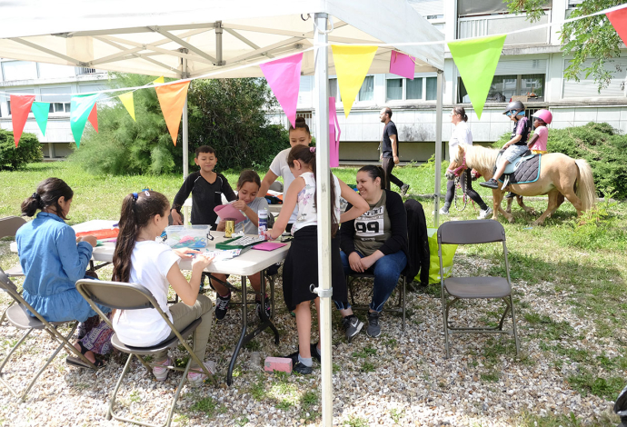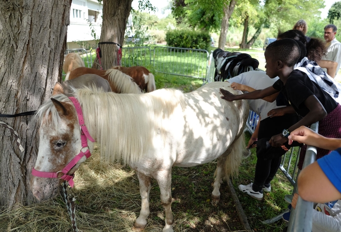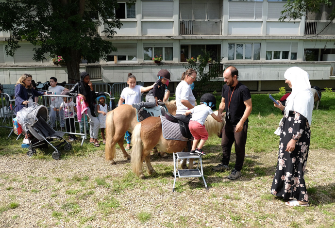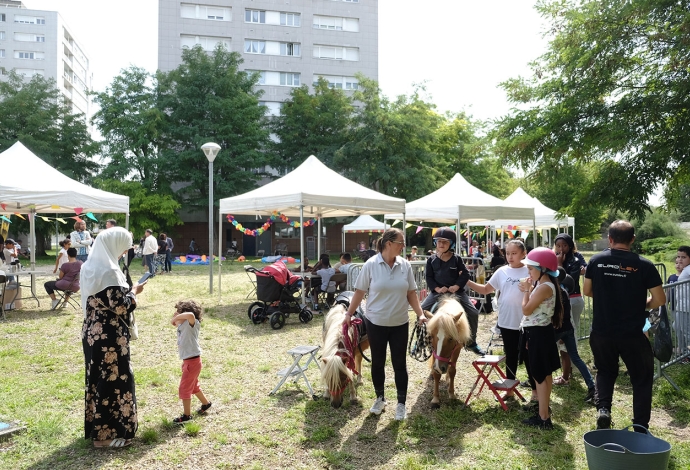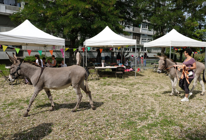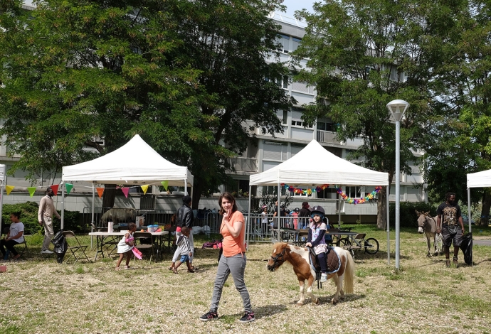 Ping-pong, babyfoot, jeu molkky, jeu de construction, parcours d'évolution et jeux d'eau pour les tout-petits, atelier de réparation de vélo avec l'association "Bicyclo", atelier décoration, des structures de jeux gonflables, des tours en poney… cette après-midi ensoleillée pleine d’animations dans la cité Saint-Leu avait tout pour réjouir petits et grands en plein cœur du mois d’août. Et les deux ânes qui passaient à proximité donnaient à Villetaneuse un air de campagne bien tranquille.
