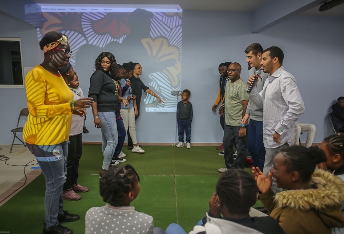 Le Kawa du PIJ (point information jeunesse) s'est déplacé au Tremplin pour sa deuxième édition autour des mémoires. Bananes plantain cuisinées sur place par les jeunes du PIJ, quizz sur l'histoire de la ville, citations personnelles inscrites sur les vitres, lecture de poème, démonstration de Salsa, échange sur les origines du Wax, sur des images véhiculées par internet, sur la double nationalité et les parcours qu'elle induit... Cette soirée était plurielle et collective, à l'image de la démarche portée par la ville : construire ensemble des mémoires apaisées dans une culture de paix où la mémoire de chacun est reconnue et partagée par tous.