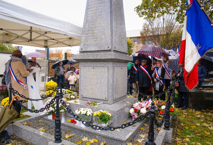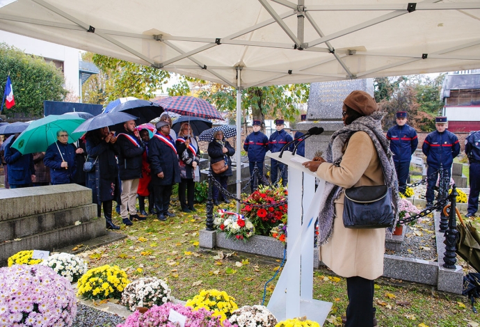 "Aujourd’hui pour la cent unième fois, nous nous réunissons pour célébrer la paix, ce bien précieux qu’il est plus que jamais nécessaire de préserver. " C'est en ces termes que Fatoumata Sakho, maire-adjointe, a effectué une allocution au nom de la Municipalité pour la commémoration de l’Armistice le 11 novembre 2019 devant le monument aux morts au cimetière communal et en présence d'habitants, élus, association d'anciens combattants et des sapeurs-pompiers de Paris.